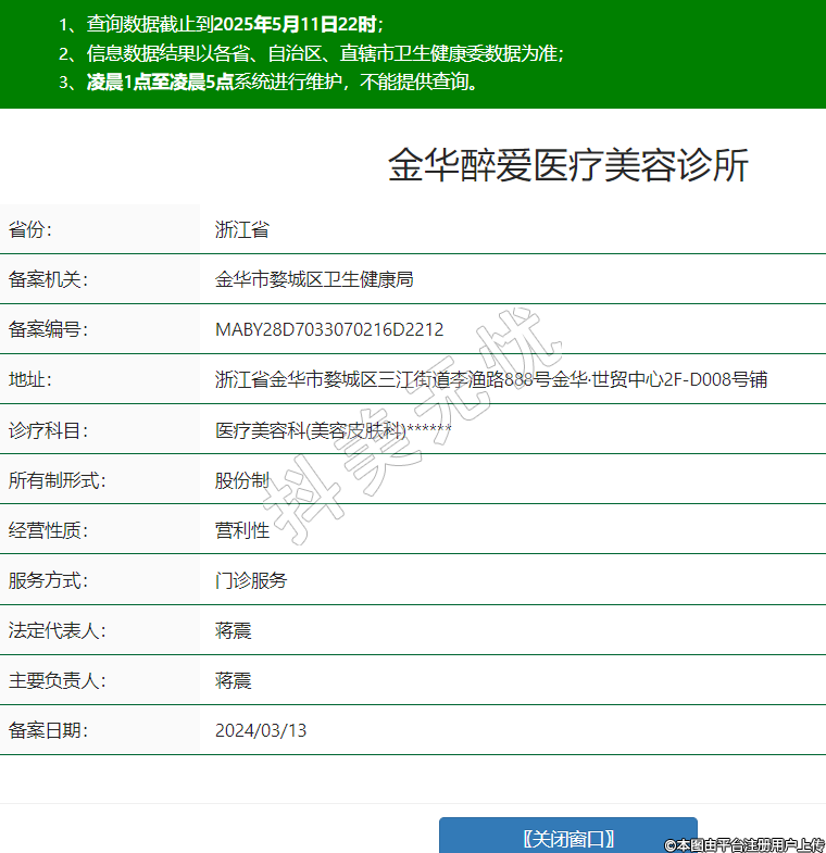 金華醉愛醫(yī)療美容診所,診療科目:醫(yī)療美容科(美容皮膚科)******
