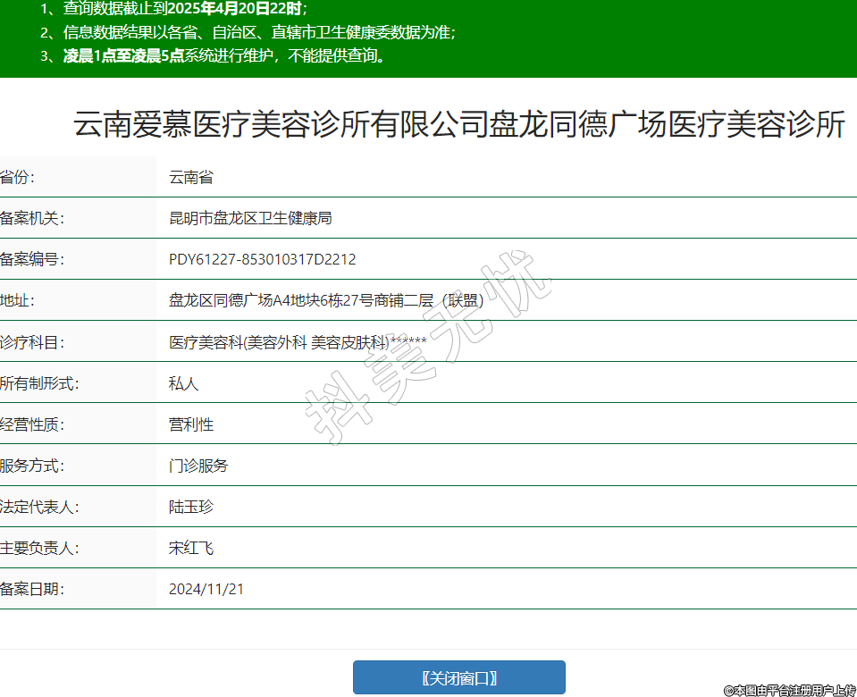 云南愛慕醫(yī)療美容診所有限公司盤龍同德廣場醫(yī)療美容診所