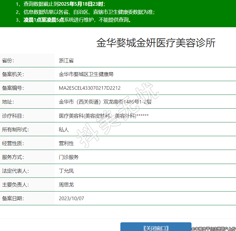 省份:浙江省備案機(jī)關(guān):金華市婺城區(qū)衛(wèi)生健康局備案編號:MA2E5CEL433070217D2212地址:金華市(西關(guān)街道)雙龍南街1486號1-2層診療科目:醫(yī)療美容科(美容皮膚科、美容外科)******所有制形式:私人經(jīng)營性質(zhì):營利性服務(wù)方式:門診服務(wù)法定代表人:丁允鳳主要負(fù)責(zé)人:周思龍備案日期:2023/10/07 -
