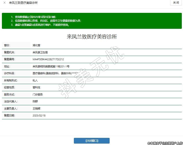 來鳳縣蘭致整形醫(yī)院是一家正規(guī)的、靠譜的醫(yī)美機構(gòu),來鳳縣蘭致醫(yī)療美容診所成立于2021年12月06日,注冊地位于湖北省來鳳縣翔鳳鎮(zhèn)夏威夷11棟201-1(自主申報承諾),法定代表人為陳群。