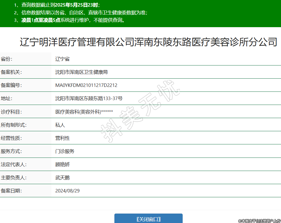 遼寧明洋醫(yī)療管理有限公司渾南東陵?yáng)|路醫(yī)療美容診所分公司