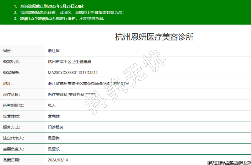 省份:浙江省備案機(jī)關(guān):杭州市臨平區(qū)衛(wèi)生健康局備案編號(hào):MA280YDX333011317D2212地址:浙江省杭州市臨平區(qū)南苑街道疊華街10號(hào)101室診療科目:醫(yī)療美容科(美容外科)******所有制形式:私人經(jīng)營(yíng)性質(zhì):營(yíng)利性服務(wù)方式:門診服務(wù)法定代表人:吳雪梅主要負(fù)責(zé)人:吳亞樂備案日期:2024/03/14 -