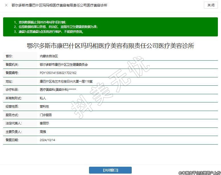 鄂爾多斯市康巴什區(qū)瑪瑪相醫(yī)療美容有限責(zé)任公司醫(yī)療美容診所