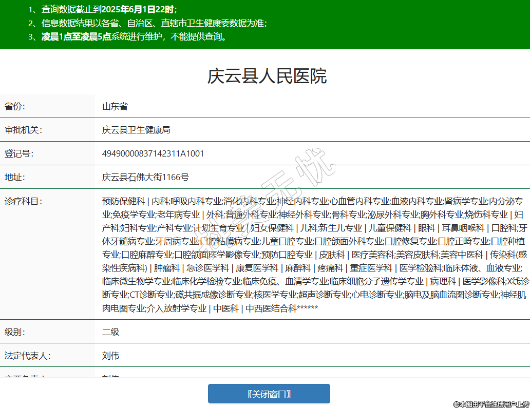 省份:山東省審批機(jī)關(guān):慶云縣衛(wèi)生健康局登記號(hào):49490000837142311A1001地址:慶云縣石佛大街1166號(hào)診療科目:預(yù)防保健科 | 內(nèi)科;呼吸內(nèi)科專業(yè);消化內(nèi)科專業(yè);神經(jīng)內(nèi)科專業(yè);心血管內(nèi)科專業(yè);血液內(nèi)科專業(yè);腎病學(xué)專業(yè);內(nèi)分泌專業(yè);免疫學(xué)專業(yè);老年病專業(yè) | 外科;普通外科專業(yè);神經(jīng)外科專業(yè);骨科專業(yè);泌尿外科專業(yè);胸外科專業(yè);燒傷科專業(yè) | 婦產(chǎn)科;婦科專業(yè);產(chǎn)科專業(yè);計(jì)劃生育專業(yè) | 婦女保健科 | 兒科;新生兒專業(yè) | 兒童保健科 | 眼科 | 耳鼻咽喉科 | 口腔科;牙體牙髓病專業(yè);牙周病專業(yè);口腔粘膜病專業(yè);兒童口腔專業(yè);口腔頜面外科專業(yè);口腔修復(fù)專業(yè);口腔正畸專業(yè);口腔種植專業(yè);口腔麻醉專業(yè);口腔頜面醫(yī)學(xué)影像專業(yè);預(yù)防口腔專業(yè) | 皮膚科 | 醫(yī)療美容科;美容皮膚科;美容中醫(yī)科 | 傳染科(感染性疾病科) | 腫瘤科 | 急診醫(yī)學(xué)科 | 康復(fù)醫(yī)學(xué)科 | 麻醉科 | 疼痛科 | 重癥醫(yī)學(xué)科 | 醫(yī)學(xué)檢驗(yàn)科;臨床體液、血液專業(yè);臨床微生物學(xué)專業(yè);臨床化學(xué)檢驗(yàn)專業(yè);臨床免疫、血清學(xué)專業(yè);臨床細(xì)胞分子遺傳學(xué)專業(yè) | 病理科 | 醫(yī)學(xué)影像科;X線診斷專業(yè);CT診斷專業(yè);磁共振成像診斷專業(yè);核醫(yī)學(xué)專業(yè);超聲診斷專業(yè);心電診斷專業(yè);腦電及腦血流圖診斷專業(yè);神經(jīng)肌肉電圖專業(yè);介入放射學(xué)專業(yè) | 中醫(yī)科 | 中西醫(yī)結(jié)合科******級(jí)別:二級(jí)法定代表人:劉偉主要負(fù)責(zé)人:劉偉執(zhí)業(yè)許可證有效期:2022/01/26 -至- 2037/01/25 -