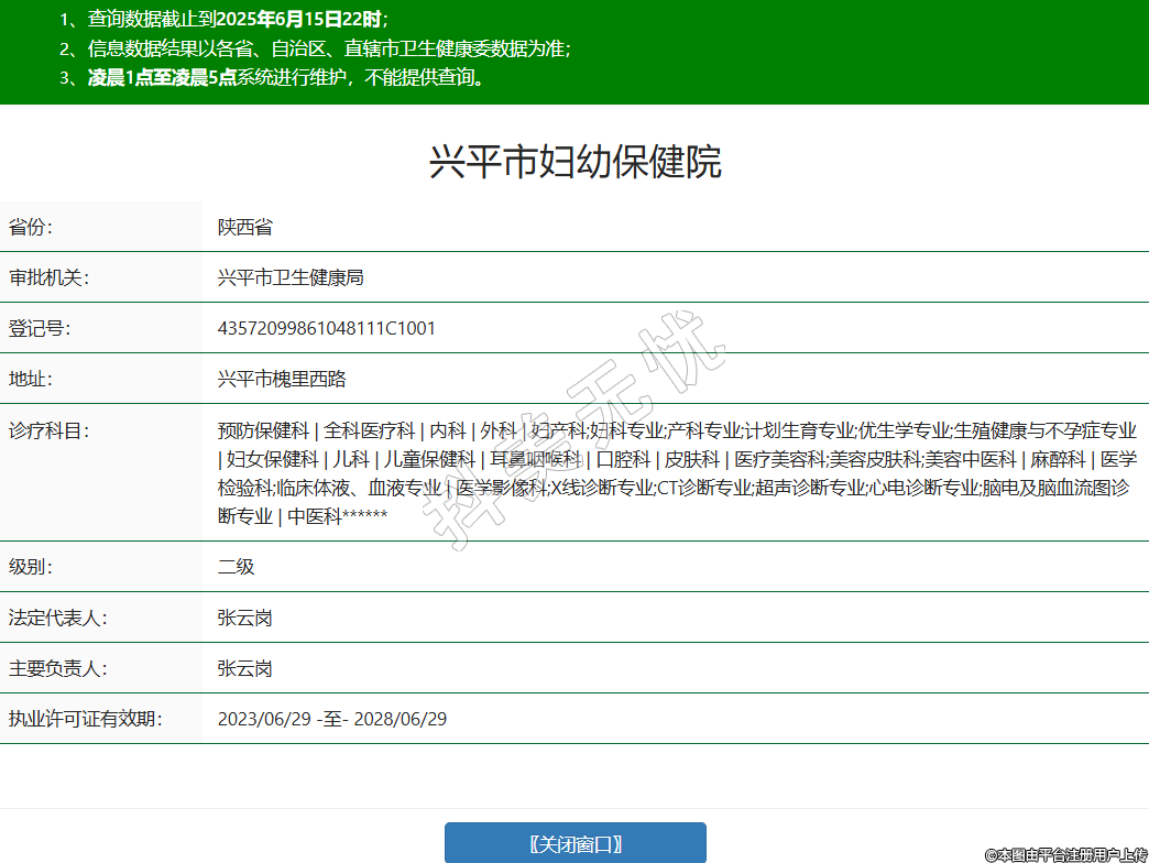 省份:陜西省審批機關(guān):興平市衛(wèi)生健康局登記號:43572099861048111C1001地址:興平市槐里西路診療科目:預(yù)防保健科 | 全科醫(yī)療科 | 內(nèi)科 | 外科 | 婦產(chǎn)科;婦科專業(yè);產(chǎn)科專業(yè);計劃生育專業(yè);優(yōu)生學(xué)專業(yè);生殖健康與不孕癥專業(yè) | 婦女保健科 | 兒科 | 兒童保健科 | 耳鼻咽喉科 | 口腔科 | 皮膚科 | 醫(yī)療美容科;美容皮膚科;美容中醫(yī)科 | 麻醉科 | 醫(yī)學(xué)檢驗科;臨床體液、血液專業(yè) | 醫(yī)學(xué)影像科;X線診斷專業(yè);CT診斷專業(yè);超聲診斷專業(yè);心電診斷專業(yè);腦電及腦血流圖診斷專業(yè) | 中醫(yī)科******級別:二級法定代表人:張云崗主要負責(zé)人:張云崗執(zhí)業(yè)許可證有效期:2023/06/29 -至- 2028/06/29 -