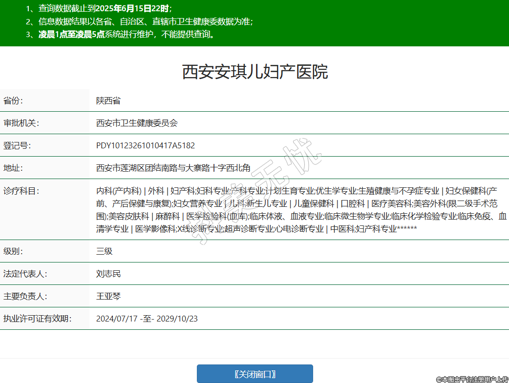 省份:陜西省審批機關:西安市衛(wèi)生健康委員會登記號:PDY10123261010417A5182地址:西安市蓮湖區(qū)團結(jié)南路與大寨路十字西北角診療科目:內(nèi)科(產(chǎn)內(nèi)科) | 外科 | 婦產(chǎn)科;婦科專業(yè);產(chǎn)科專業(yè);計劃生育專業(yè);優(yōu)生學專業(yè);生殖健康與不孕癥專業(yè) | 婦女保健科(產(chǎn)前、產(chǎn)后保健與康復);婦女營養(yǎng)專業(yè) | 兒科;新生兒專業(yè) | 兒童保健科 | 口腔科 | 醫(yī)療美容科;美容外科(限二級手術范圍);美容皮膚科 | 麻醉科 | 醫(yī)學檢驗科(血庫);臨床體液、血液專業(yè);臨床微生物學專業(yè);臨床化學檢驗專業(yè);臨床免疫、血清學專業(yè) | 醫(yī)學影像科;X線診斷專業(yè);超聲診斷專業(yè);心電診斷專業(yè) | 中醫(yī)科;婦產(chǎn)科專業(yè)******級別:三級法定代表人:劉志民主要負責人:王亞琴執(zhí)業(yè)許可證有效期:2024/07/17 -至- 2029/10/23 -