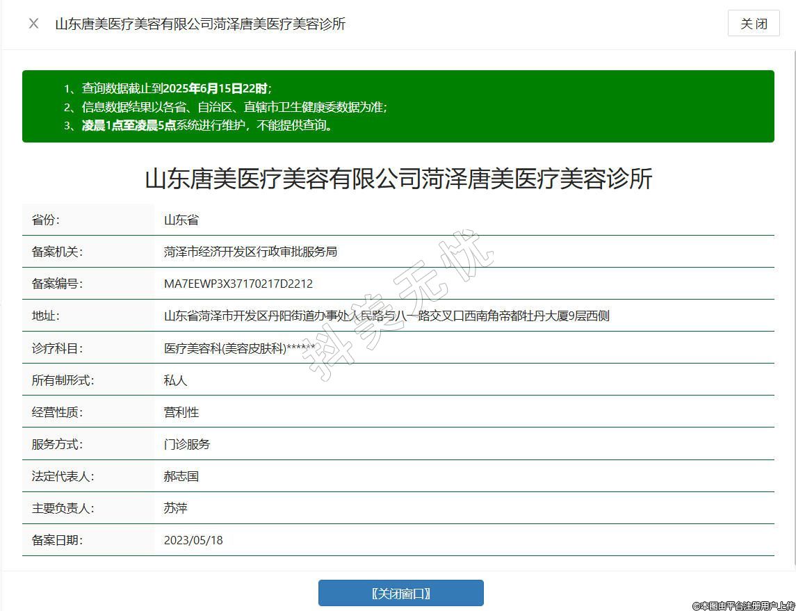 山東唐美醫(yī)療美容有限公司菏澤唐美醫(yī)療美容診所