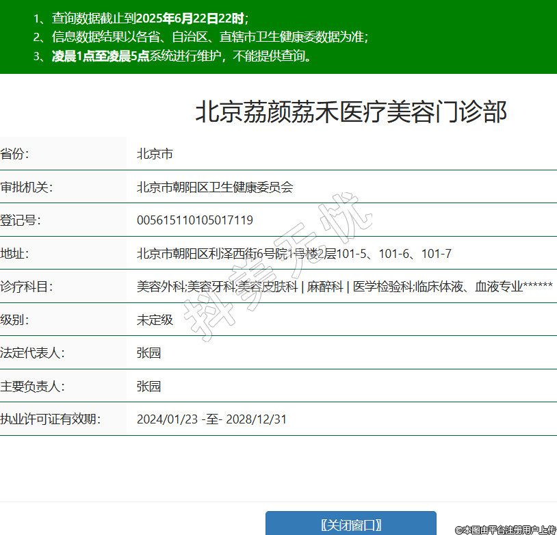 北京荔顏荔禾醫(yī)療美容門診部,診療科目:美容外科;美容牙科;美容皮膚科 | 麻醉科 | 醫(yī)學(xué)檢驗(yàn)科;臨床體液、血液專業(yè)******