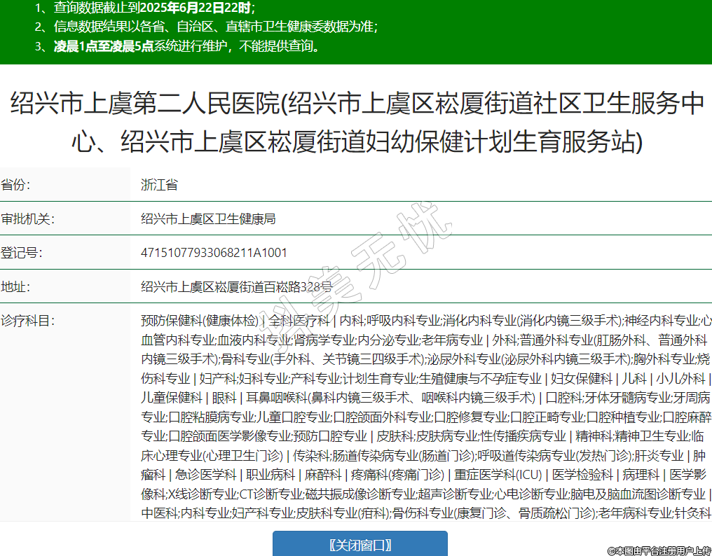 省份:浙江省審批機關(guān):紹興市上虞區(qū)衛(wèi)生健康局登記號:47151077933068211A1001地址:紹興市上虞區(qū)崧廈街道百崧路328號診療科目:預(yù)防保健科(健康體檢) | 全科醫(yī)療科 | 內(nèi)科;呼吸內(nèi)科專業(yè);消化內(nèi)科專業(yè)(消化內(nèi)鏡三級手術(shù));神經(jīng)內(nèi)科專業(yè);心血管內(nèi)科專業(yè);血液內(nèi)科專業(yè);腎病學(xué)專業(yè);內(nèi)分泌專業(yè);老年病專業(yè) | 外科;普通外科專業(yè)(肛腸外科、普通外科內(nèi)鏡三級手術(shù));骨科專業(yè)(手外科、關(guān)節(jié)鏡三四級手術(shù));泌尿外科專業(yè)(泌尿外科內(nèi)鏡三級手術(shù));胸外科專業(yè);燒傷科專業(yè) | 婦產(chǎn)科;婦科專業(yè);產(chǎn)科專業(yè);計劃生育專業(yè);生殖健康與不孕癥專業(yè) | 婦女保健科 | 兒科 | 小兒外科 | 兒童保健科 | 眼科 | 耳鼻咽喉科(鼻科內(nèi)鏡三級手術(shù)、咽喉科內(nèi)鏡三級手術(shù)) | 口腔科;牙體牙髓病專業(yè);牙周病專業(yè);口腔粘膜病專業(yè);兒童口腔專業(yè);口腔頜面外科專業(yè);口腔修復(fù)專業(yè);口腔正畸專業(yè);口腔種植專業(yè);口腔麻醉專業(yè);口腔頜面醫(yī)學(xué)影像專業(yè);預(yù)防口腔專業(yè) | 皮膚科;皮膚病專業(yè);性傳播疾病專業(yè) | 精神科;精神衛(wèi)生專業(yè);臨床心理專業(yè)(心理衛(wèi)生門診) | 傳染科;腸道傳染病專業(yè)(腸道門診);呼吸道傳染病專業(yè)(發(fā)熱門診);肝炎專業(yè) | 腫瘤科 | 急診醫(yī)學(xué)科 | 職業(yè)病科 | 麻醉科 | 疼痛科(疼痛門診) | 重癥醫(yī)學(xué)科(ICU) | 醫(yī)學(xué)檢驗科 | 病理科 | 醫(yī)學(xué)影像科;X線診斷專業(yè);CT診斷專業(yè);磁共振成像診斷專業(yè);超聲診斷專業(yè);心電診斷專業(yè);腦電及腦血流圖診斷專業(yè) | 中醫(yī)科;內(nèi)科專業(yè);婦產(chǎn)科專業(yè);皮膚科專業(yè)(疳科);骨傷科專業(yè)(康復(fù)門診、骨質(zhì)疏松門診);老年病科專業(yè);針灸科專業(yè);推拿科專業(yè) | 中西醫(yī)結(jié)合科******級別:二級法定代表人:俞棟主要負(fù)責(zé)人:章雪峰執(zhí)業(yè)許可證有效期:2024/05/08 -至- 2036/06/30 -