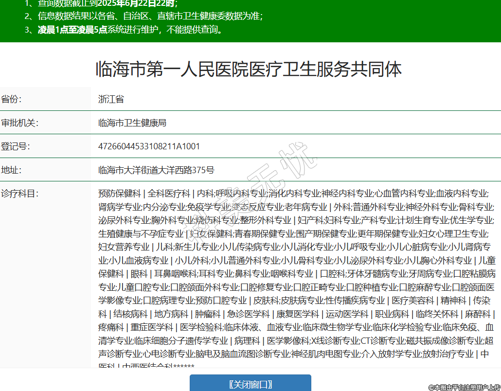 省份:浙江省審批機(jī)關(guān):臨海市衛(wèi)生健康局登記號:47266044533108211A1001地址:臨海市大洋街道大洋西路375號診療科目:預(yù)防保健科 | 全科醫(yī)療科 | 內(nèi)科;呼吸內(nèi)科專業(yè);消化內(nèi)科專業(yè);神經(jīng)內(nèi)科專業(yè);心血管內(nèi)科專業(yè);血液內(nèi)科專業(yè);腎病學(xué)專業(yè);內(nèi)分泌專業(yè);免疫學(xué)專業(yè);變態(tài)反應(yīng)專業(yè);老年病專業(yè) | 外科;普通外科專業(yè);神經(jīng)外科專業(yè);骨科專業(yè);泌尿外科專業(yè);胸外科專業(yè);燒傷科專業(yè);整形外科專業(yè) | 婦產(chǎn)科;婦科專業(yè);產(chǎn)科專業(yè);計劃生育專業(yè);優(yōu)生學(xué)專業(yè);生殖健康與不孕癥專業(yè) | 婦女保健科;青春期保健專業(yè);圍產(chǎn)期保健專業(yè);更年期保健專業(yè);婦女心理衛(wèi)生專業(yè);婦女營養(yǎng)專業(yè) | 兒科;新生兒專業(yè);小兒傳染病專業(yè);小兒消化專業(yè);小兒呼吸專業(yè);小兒心臟病專業(yè);小兒腎病專業(yè);小兒血液病專業(yè) | 小兒外科;小兒普通外科專業(yè);小兒骨科專業(yè);小兒泌尿外科專業(yè);小兒胸心外科專業(yè) | 兒童保健科 | 眼科 | 耳鼻咽喉科;耳科專業(yè);鼻科專業(yè);咽喉科專業(yè) | 口腔科;牙體牙髓病專業(yè);牙周病專業(yè);口腔粘膜病專業(yè);兒童口腔專業(yè);口腔頜面外科專業(yè);口腔修復(fù)專業(yè);口腔正畸專業(yè);口腔種植專業(yè);口腔麻醉專業(yè);口腔頜面醫(yī)學(xué)影像專業(yè);口腔病理專業(yè);預(yù)防口腔專業(yè) | 皮膚科;皮膚病專業(yè);性傳播疾病專業(yè) | 醫(yī)療美容科 | 精神科 | 傳染科 | 結(jié)核病科 | 地方病科 | 腫瘤科 | 急診醫(yī)學(xué)科 | 康復(fù)醫(yī)學(xué)科 | 運(yùn)動醫(yī)學(xué)科 | 職業(yè)病科 | 臨終關(guān)懷科 | 麻醉科 | 疼痛科 | 重癥醫(yī)學(xué)科 | 醫(yī)學(xué)檢驗科;臨床體液、血液專業(yè);臨床微生物學(xué)專業(yè);臨床化學(xué)檢驗專業(yè);臨床免疫、血清學(xué)專業(yè);臨床細(xì)胞分子遺傳學(xué)專業(yè) | 病理科 | 醫(yī)學(xué)影像科;X線診斷專業(yè);CT診斷專業(yè);磁共振成像診斷專業(yè);超聲診斷專業(yè);心電診斷專業(yè);腦電及腦血流圖診斷專業(yè);神經(jīng)肌肉電圖專業(yè);介入放射學(xué)專業(yè);放射治療專業(yè) | 中醫(yī)科 | 中西醫(yī)結(jié)合科******級別:二級法定代表人:王宇光主要負(fù)責(zé)人:王宇光執(zhí)業(yè)許可證有效期:2022/08/29 -至- 2033/06/07 -
