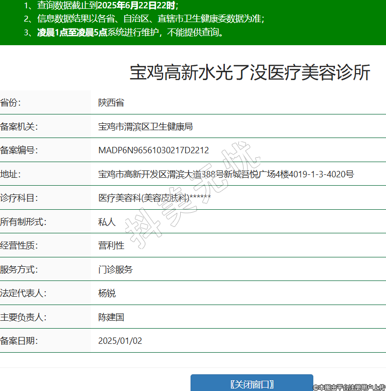 省份:陜西省備案機(jī)關(guān):寶雞市渭濱區(qū)衛(wèi)生健康局備案編號(hào):MADP6N96561030217D2212地址:寶雞市高新開(kāi)發(fā)區(qū)渭濱大道388號(hào)新城吾悅廣場(chǎng)4樓4019-1-3-4020號(hào)診療科目:醫(yī)療美容科(美容皮膚科)******所有制形式:私人經(jīng)營(yíng)性質(zhì):營(yíng)利性服務(wù)方式:門(mén)診服務(wù)法定代表人:楊銳主要負(fù)責(zé)人:陳建國(guó)備案日期:2025/01/02 -