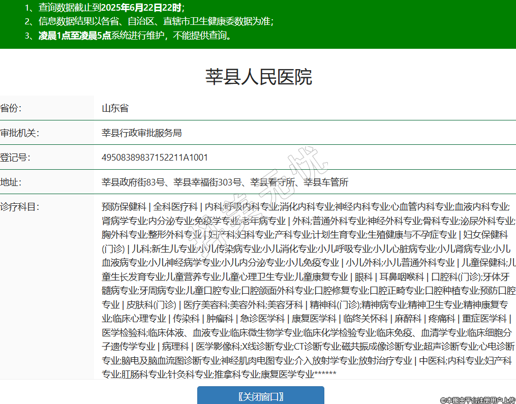 省份:山東省審批機(jī)關(guān):莘縣行政審批服務(wù)局登記號(hào):49508389837152211A1001地址:莘縣政府街83號(hào)、莘縣幸福街303號(hào)、莘縣看守所、莘縣車(chē)管所診療科目:預(yù)防保健科 | 全科醫(yī)療科 | 內(nèi)科;呼吸內(nèi)科專業(yè);消化內(nèi)科專業(yè);神經(jīng)內(nèi)科專業(yè);心血管內(nèi)科專業(yè);血液內(nèi)科專業(yè);腎病學(xué)專業(yè);內(nèi)分泌專業(yè);免疫學(xué)專業(yè);老年病專業(yè) | 外科;普通外科專業(yè);神經(jīng)外科專業(yè);骨科專業(yè);泌尿外科專業(yè);胸外科專業(yè);整形外科專業(yè) | 婦產(chǎn)科;婦科專業(yè);產(chǎn)科專業(yè);計(jì)劃生育專業(yè);生殖健康與不孕癥專業(yè) | 婦女保健科(門(mén)診) | 兒科;新生兒專業(yè);小兒傳染病專業(yè);小兒消化專業(yè);小兒呼吸專業(yè);小兒心臟病專業(yè);小兒腎病專業(yè);小兒血液病專業(yè);小兒神經(jīng)病學(xué)專業(yè);小兒內(nèi)分泌專業(yè);小兒免疫專業(yè) | 小兒外科;小兒普通外科專業(yè) | 兒童保健科;兒童生長(zhǎng)發(fā)育專業(yè);兒童營(yíng)養(yǎng)專業(yè);兒童心理衛(wèi)生專業(yè);兒童康復(fù)專業(yè) | 眼科 | 耳鼻咽喉科 | 口腔科(門(mén)診);牙體牙髓病專業(yè);牙周病專業(yè);兒童口腔專業(yè);口腔頜面外科專業(yè);口腔修復(fù)專業(yè);口腔正畸專業(yè);口腔種植專業(yè);預(yù)防口腔專業(yè) | 皮膚科(門(mén)診) | 醫(yī)療美容科;美容外科;美容牙科 | 精神科(門(mén)診);精神病專業(yè);精神衛(wèi)生專業(yè);精神康復(fù)專業(yè);臨床心理專業(yè) | 傳染科 | 腫瘤科 | 急診醫(yī)學(xué)科 | 康復(fù)醫(yī)學(xué)科 | 臨終關(guān)懷科 | 麻醉科 | 疼痛科 | 重癥醫(yī)學(xué)科 | 醫(yī)學(xué)檢驗(yàn)科;臨床體液、血液專業(yè);臨床微生物學(xué)專業(yè);臨床化學(xué)檢驗(yàn)專業(yè);臨床免疫、血清學(xué)專業(yè);臨床細(xì)胞分子遺傳學(xué)專業(yè) | 病理科 | 醫(yī)學(xué)影像科;X線診斷專業(yè);CT診斷專業(yè);磁共振成像診斷專業(yè);超聲診斷專業(yè);心電診斷專業(yè);腦電及腦血流圖診斷專業(yè);神經(jīng)肌肉電圖專業(yè);介入放射學(xué)專業(yè);放射治療專業(yè) | 中醫(yī)科;內(nèi)科專業(yè);婦產(chǎn)科專業(yè);肛腸科專業(yè);針灸科專業(yè);推拿科專業(yè);康復(fù)醫(yī)學(xué)專業(yè)******級(jí)別:二級(jí)法定代表人:李文元主要負(fù)責(zé)人:李文元執(zhí)業(yè)許可證有效期:2025/03/19 -至- 2037/10/23 -
