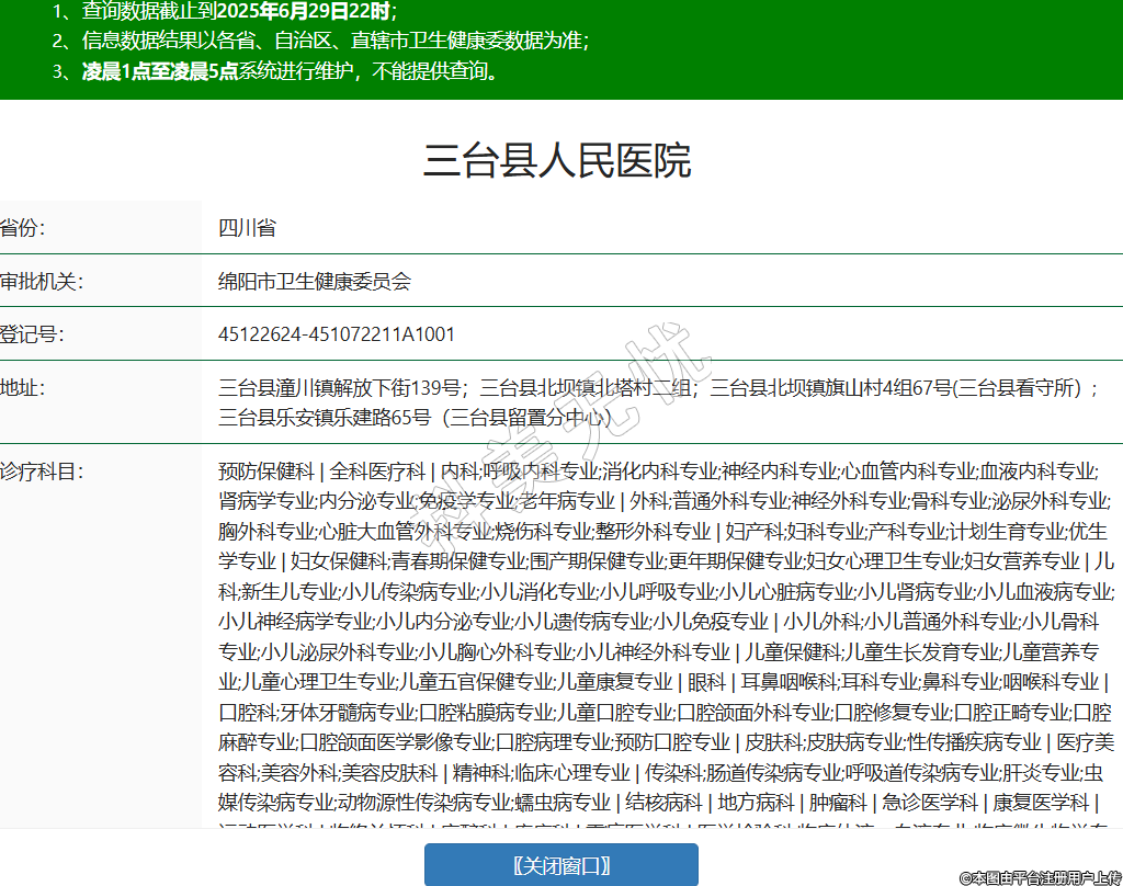 省份:四川省審批機(jī)關(guān):綿陽(yáng)市衛(wèi)生健康委員會(huì)登記號(hào):45122624-451072211A1001地址:三臺(tái)縣潼川鎮(zhèn)解放下街139號(hào);三臺(tái)縣北壩鎮(zhèn)北塔村二組;三臺(tái)縣北壩鎮(zhèn)旗山村4組67號(hào)(三臺(tái)縣看守所);三臺(tái)縣樂(lè)安鎮(zhèn)樂(lè)建路65號(hào)(三臺(tái)縣留置分中心)診療科目:預(yù)防保健科 | 全科醫(yī)療科 | 內(nèi)科;呼吸內(nèi)科專業(yè);消化內(nèi)科專業(yè);神經(jīng)內(nèi)科專業(yè);心血管內(nèi)科專業(yè);血液內(nèi)科專業(yè);腎病學(xué)專業(yè);內(nèi)分泌專業(yè);免疫學(xué)專業(yè);老年病專業(yè) | 外科;普通外科專業(yè);神經(jīng)外科專業(yè);骨科專業(yè);泌尿外科專業(yè);胸外科專業(yè);心臟大血管外科專業(yè);燒傷科專業(yè);整形外科專業(yè) | 婦產(chǎn)科;婦科專業(yè);產(chǎn)科專業(yè);計(jì)劃生育專業(yè);優(yōu)生學(xué)專業(yè) | 婦女保健科;青春期保健專業(yè);圍產(chǎn)期保健專業(yè);更年期保健專業(yè);婦女心理衛(wèi)生專業(yè);婦女營(yíng)養(yǎng)專業(yè) | 兒科;新生兒專業(yè);小兒傳染病專業(yè);小兒消化專業(yè);小兒呼吸專業(yè);小兒心臟病專業(yè);小兒腎病專業(yè);小兒血液病專業(yè);小兒神經(jīng)病學(xué)專業(yè);小兒內(nèi)分泌專業(yè);小兒遺傳病專業(yè);小兒免疫專業(yè) | 小兒外科;小兒普通外科專業(yè);小兒骨科專業(yè);小兒泌尿外科專業(yè);小兒胸心外科專業(yè);小兒神經(jīng)外科專業(yè) | 兒童保健科;兒童生長(zhǎng)發(fā)育專業(yè);兒童營(yíng)養(yǎng)專業(yè);兒童心理衛(wèi)生專業(yè);兒童五官保健專業(yè);兒童康復(fù)專業(yè) | 眼科 | 耳鼻咽喉科;耳科專業(yè);鼻科專業(yè);咽喉科專業(yè) | 口腔科;牙體牙髓病專業(yè);口腔粘膜病專業(yè);兒童口腔專業(yè);口腔頜面外科專業(yè);口腔修復(fù)專業(yè);口腔正畸專業(yè);口腔麻醉專業(yè);口腔頜面醫(yī)學(xué)影像專業(yè);口腔病理專業(yè);預(yù)防口腔專業(yè) | 皮膚科;皮膚病專業(yè);性傳播疾病專業(yè) | 醫(yī)療美容科;美容外科;美容皮膚科 | 精神科;臨床心理專業(yè) | 傳染科;腸道傳染病專業(yè);呼吸道傳染病專業(yè);肝炎專業(yè);蟲媒傳染病專業(yè);動(dòng)物源性傳染病專業(yè);蠕蟲病專業(yè) | 結(jié)核病科 | 地方病科 | 腫瘤科 | 急診醫(yī)學(xué)科 | 康復(fù)醫(yī)學(xué)科 | 運(yùn)動(dòng)醫(yī)學(xué)科 | 臨終關(guān)懷科 | 麻醉科 | 疼痛科 | 重癥醫(yī)學(xué)科 | 醫(yī)學(xué)檢驗(yàn)科;臨床體液、血液專業(yè);臨床微生物學(xué)專業(yè);臨床化學(xué)檢驗(yàn)專業(yè);臨床免疫、血清學(xué)專業(yè);臨床細(xì)胞分子遺傳學(xué)專業(yè) | 病理科 | 醫(yī)學(xué)影像科;X線診斷專業(yè);CT診斷專業(yè);磁共振成像診斷專業(yè);超聲診斷專業(yè);心電診斷專業(yè);腦電及腦血流圖診斷專業(yè);神經(jīng)肌肉電圖專業(yè);介入放射學(xué)專業(yè);放射治療專業(yè) | 中醫(yī)科;內(nèi)科專業(yè);外科專業(yè);婦產(chǎn)科專業(yè);兒科專業(yè);皮膚科專業(yè);眼科專業(yè);耳鼻咽喉科專業(yè);口腔科專業(yè);腫瘤科專業(yè);骨傷科專業(yè);肛腸科專業(yè);老年病科專業(yè);針灸科專業(yè);推拿科專業(yè);康復(fù)醫(yī)學(xué)專業(yè);急診科專業(yè);預(yù)防保健科專業(yè) | 中西醫(yī)結(jié)合科******級(jí)別:三級(jí)法定代表人:周立遠(yuǎn)主要負(fù)責(zé)人:周立遠(yuǎn)執(zhí)業(yè)許可證有效期:2025/03/26 -至- 2039/04/29 -