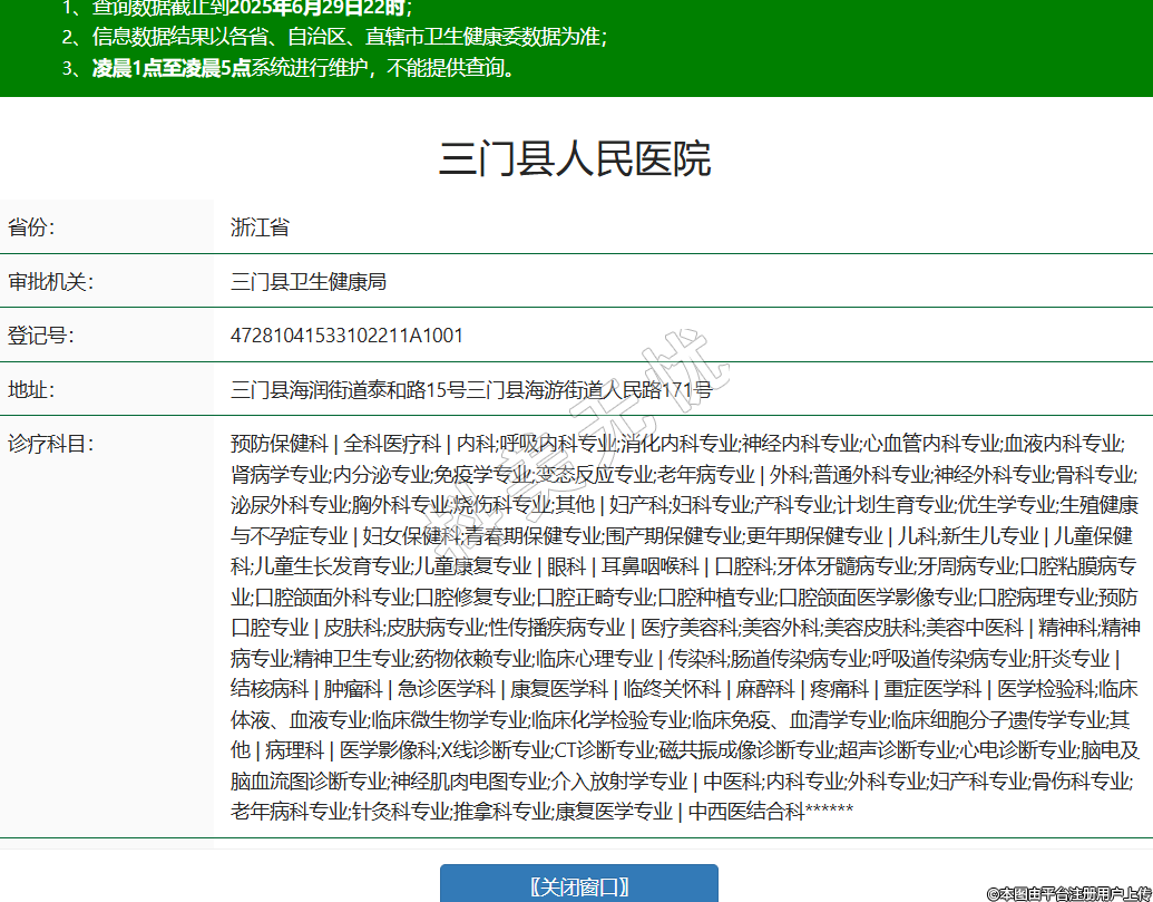 省份:浙江省審批機(jī)關(guān):三門縣衛(wèi)生健康局登記號(hào):47281041533102211A1001地址:三門縣海潤街道泰和路15號(hào)三門縣海游街道人民路171號(hào)診療科目:預(yù)防保健科 | 全科醫(yī)療科 | 內(nèi)科;呼吸內(nèi)科專業(yè);消化內(nèi)科專業(yè);神經(jīng)內(nèi)科專業(yè);心血管內(nèi)科專業(yè);血液內(nèi)科專業(yè);腎病學(xué)專業(yè);內(nèi)分泌專業(yè);免疫學(xué)專業(yè);變態(tài)反應(yīng)專業(yè);老年病專業(yè) | 外科;普通外科專業(yè);神經(jīng)外科專業(yè);骨科專業(yè);泌尿外科專業(yè);胸外科專業(yè);燒傷科專業(yè);其他 | 婦產(chǎn)科;婦科專業(yè);產(chǎn)科專業(yè);計(jì)劃生育專業(yè);優(yōu)生學(xué)專業(yè);生殖健康與不孕癥專業(yè) | 婦女保健科;青春期保健專業(yè);圍產(chǎn)期保健專業(yè);更年期保健專業(yè) | 兒科;新生兒專業(yè) | 兒童保健科;兒童生長發(fā)育專業(yè);兒童康復(fù)專業(yè) | 眼科 | 耳鼻咽喉科 | 口腔科;牙體牙髓病專業(yè);牙周病專業(yè);口腔粘膜病專業(yè);口腔頜面外科專業(yè);口腔修復(fù)專業(yè);口腔正畸專業(yè);口腔種植專業(yè);口腔頜面醫(yī)學(xué)影像專業(yè);口腔病理專業(yè);預(yù)防口腔專業(yè) | 皮膚科;皮膚病專業(yè);性傳播疾病專業(yè) | 醫(yī)療美容科;美容外科;美容皮膚科;美容中醫(yī)科 | 精神科;精神病專業(yè);精神衛(wèi)生專業(yè);藥物依賴專業(yè);臨床心理專業(yè) | 傳染科;腸道傳染病專業(yè);呼吸道傳染病專業(yè);肝炎專業(yè) | 結(jié)核病科 | 腫瘤科 | 急診醫(yī)學(xué)科 | 康復(fù)醫(yī)學(xué)科 | 臨終關(guān)懷科 | 麻醉科 | 疼痛科 | 重癥醫(yī)學(xué)科 | 醫(yī)學(xué)檢驗(yàn)科;臨床體液、血液專業(yè);臨床微生物學(xué)專業(yè);臨床化學(xué)檢驗(yàn)專業(yè);臨床免疫、血清學(xué)專業(yè);臨床細(xì)胞分子遺傳學(xué)專業(yè);其他 | 病理科 | 醫(yī)學(xué)影像科;X線診斷專業(yè);CT診斷專業(yè);磁共振成像診斷專業(yè);超聲診斷專業(yè);心電診斷專業(yè);腦電及腦血流圖診斷專業(yè);神經(jīng)肌肉電圖專業(yè);介入放射學(xué)專業(yè) | 中醫(yī)科;內(nèi)科專業(yè);外科專業(yè);婦產(chǎn)科專業(yè);骨傷科專業(yè);老年病科專業(yè);針灸科專業(yè);推拿科專業(yè);康復(fù)醫(yī)學(xué)專業(yè) | 中西醫(yī)結(jié)合科******級(jí)別:三級(jí)法定代表人:黎宏章主要負(fù)責(zé)人:黎宏章執(zhí)業(yè)許可證有效期:2015/11/10 -至- 2030/11/09 -
