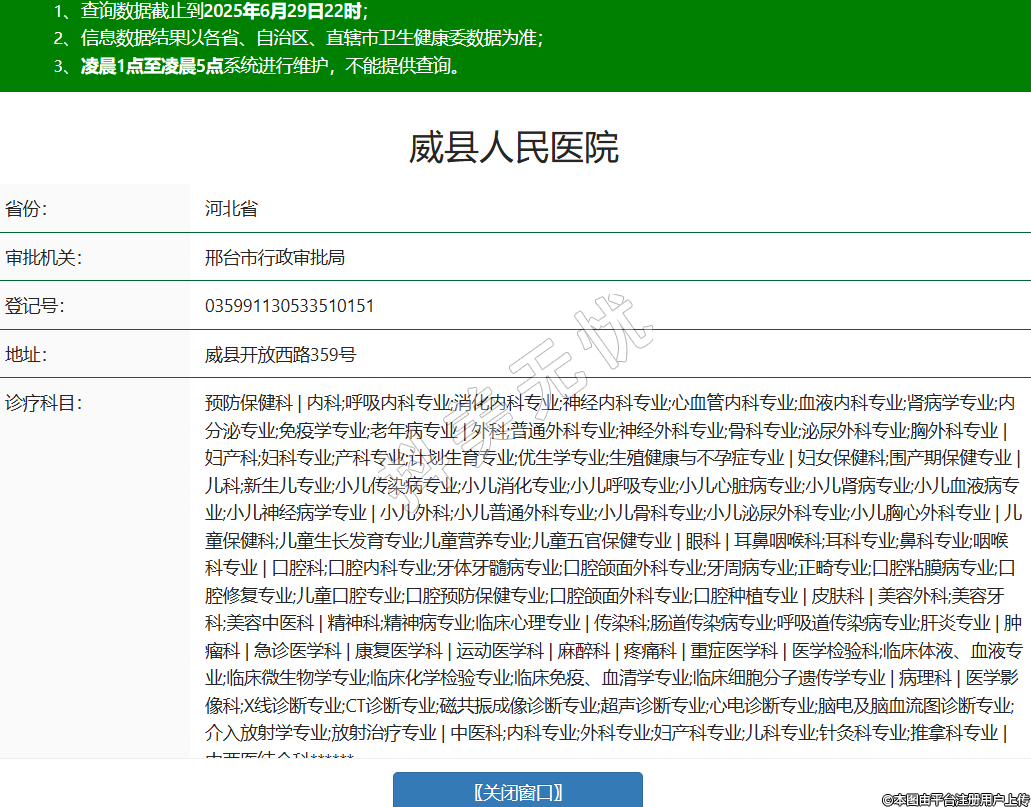 省份:河北省審批機(jī)關(guān):邢臺(tái)市行政審批局登記號(hào):035991130533510151地址:威縣開放西路359號(hào)診療科目:預(yù)防保健科 | 內(nèi)科;呼吸內(nèi)科專業(yè);消化內(nèi)科專業(yè);神經(jīng)內(nèi)科專業(yè);心血管內(nèi)科專業(yè);血液內(nèi)科專業(yè);腎病學(xué)專業(yè);內(nèi)分泌專業(yè);免疫學(xué)專業(yè);老年病專業(yè) | 外科;普通外科專業(yè);神經(jīng)外科專業(yè);骨科專業(yè);泌尿外科專業(yè);胸外科專業(yè) | 婦產(chǎn)科;婦科專業(yè);產(chǎn)科專業(yè);計(jì)劃生育專業(yè);優(yōu)生學(xué)專業(yè);生殖健康與不孕癥專業(yè) | 婦女保健科;圍產(chǎn)期保健專業(yè) | 兒科;新生兒專業(yè);小兒傳染病專業(yè);小兒消化專業(yè);小兒呼吸專業(yè);小兒心臟病專業(yè);小兒腎病專業(yè);小兒血液病專業(yè);小兒神經(jīng)病學(xué)專業(yè) | 小兒外科;小兒普通外科專業(yè);小兒骨科專業(yè);小兒泌尿外科專業(yè);小兒胸心外科專業(yè) | 兒童保健科;兒童生長發(fā)育專業(yè);兒童營養(yǎng)專業(yè);兒童五官保健專業(yè) | 眼科 | 耳鼻咽喉科;耳科專業(yè);鼻科專業(yè);咽喉科專業(yè) | 口腔科;口腔內(nèi)科專業(yè);牙體牙髓病專業(yè);口腔頜面外科專業(yè);牙周病專業(yè);正畸專業(yè);口腔粘膜病專業(yè);口腔修復(fù)專業(yè);兒童口腔專業(yè);口腔預(yù)防保健專業(yè);口腔頜面外科專業(yè);口腔種植專業(yè) | 皮膚科 | 美容外科;美容牙科;美容中醫(yī)科 | 精神科;精神病專業(yè);臨床心理專業(yè) | 傳染科;腸道傳染病專業(yè);呼吸道傳染病專業(yè);肝炎專業(yè) | 腫瘤科 | 急診醫(yī)學(xué)科 | 康復(fù)醫(yī)學(xué)科 | 運(yùn)動(dòng)醫(yī)學(xué)科 | 麻醉科 | 疼痛科 | 重癥醫(yī)學(xué)科 | 醫(yī)學(xué)檢驗(yàn)科;臨床體液、血液專業(yè);臨床微生物學(xué)專業(yè);臨床化學(xué)檢驗(yàn)專業(yè);臨床免疫、血清學(xué)專業(yè);臨床細(xì)胞分子遺傳學(xué)專業(yè) | 病理科 | 醫(yī)學(xué)影像科;X線診斷專業(yè);CT診斷專業(yè);磁共振成像診斷專業(yè);超聲診斷專業(yè);心電診斷專業(yè);腦電及腦血流圖診斷專業(yè);介入放射學(xué)專業(yè);放射治療專業(yè) | 中醫(yī)科;內(nèi)科專業(yè);外科專業(yè);婦產(chǎn)科專業(yè);兒科專業(yè);針灸科專業(yè);推拿科專業(yè) | 中西醫(yī)結(jié)合科******級(jí)別:二級(jí)法定代表人:宋長更主要負(fù)責(zé)人:宋長更執(zhí)業(yè)許可證有效期:2015/07/21 -至- 2030/07/20 -