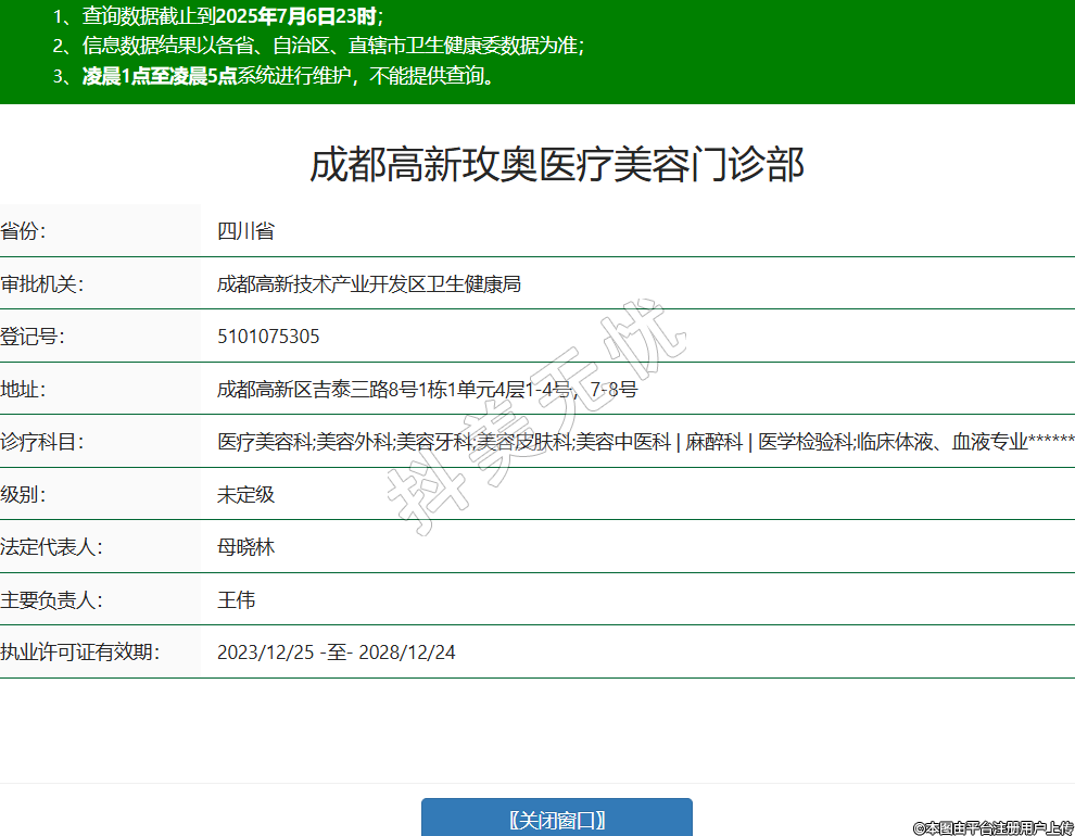 省份:四川省審批機關:成都高新技術(shù)產(chǎn)業(yè)開發(fā)區(qū)衛(wèi)生健康局登記號:5101075305地址:成都高新區(qū)吉泰三路8號1棟1單元4層1-4號,7-8號診療科目:醫(yī)療美容科;美容外科;美容牙科;美容皮膚科;美容中醫(yī)科 | 麻醉科 | 醫(yī)學檢驗科;臨床體液、血液專業(yè)******級別:未定級法定代表人:母曉林主要負責人:王偉執(zhí)業(yè)許可證有效期:2023/12/25 -至- 2028/12/24 -