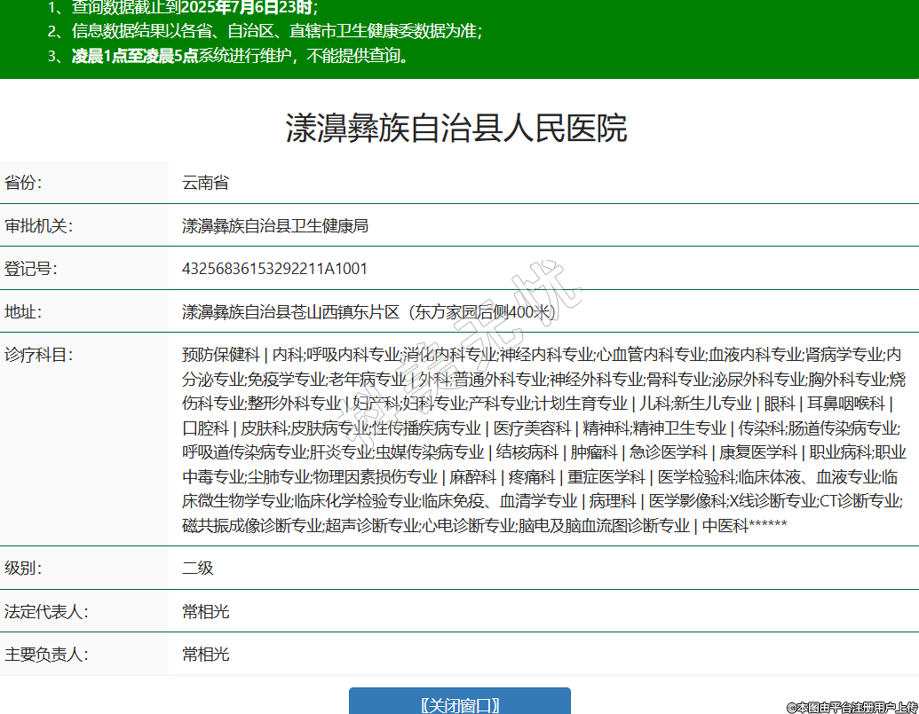 省份:云南省審批機關(guān):漾濞彝族自治縣衛(wèi)生健康局登記號:43256836153292211A1001地址:漾濞彝族自治縣蒼山西鎮(zhèn)東片區(qū)(東方家園后側(cè)400米)診療科目:預(yù)防保健科 | 內(nèi)科;呼吸內(nèi)科專業(yè);消化內(nèi)科專業(yè);神經(jīng)內(nèi)科專業(yè);心血管內(nèi)科專業(yè);血液內(nèi)科專業(yè);腎病學(xué)專業(yè);內(nèi)分泌專業(yè);免疫學(xué)專業(yè);老年病專業(yè) | 外科;普通外科專業(yè);神經(jīng)外科專業(yè);骨科專業(yè);泌尿外科專業(yè);胸外科專業(yè);燒傷科專業(yè);整形外科專業(yè) | 婦產(chǎn)科;婦科專業(yè);產(chǎn)科專業(yè);計劃生育專業(yè) | 兒科;新生兒專業(yè) | 眼科 | 耳鼻咽喉科 | 口腔科 | 皮膚科;皮膚病專業(yè);性傳播疾病專業(yè) | 醫(yī)療美容科 | 精神科;精神衛(wèi)生專業(yè) | 傳染科;腸道傳染病專業(yè);呼吸道傳染病專業(yè);肝炎專業(yè);蟲媒傳染病專業(yè) | 結(jié)核病科 | 腫瘤科 | 急診醫(yī)學(xué)科 | 康復(fù)醫(yī)學(xué)科 | 職業(yè)病科;職業(yè)中毒專業(yè);塵肺專業(yè);物理因素?fù)p傷專業(yè) | 麻醉科 | 疼痛科 | 重癥醫(yī)學(xué)科 | 醫(yī)學(xué)檢驗科;臨床體液、血液專業(yè);臨床微生物學(xué)專業(yè);臨床化學(xué)檢驗專業(yè);臨床免疫、血清學(xué)專業(yè) | 病理科 | 醫(yī)學(xué)影像科;X線診斷專業(yè);CT診斷專業(yè);磁共振成像診斷專業(yè);超聲診斷專業(yè);心電診斷專業(yè);腦電及腦血流圖診斷專業(yè) | 中醫(yī)科******級別:二級法定代表人:常相光主要負(fù)責(zé)人:常相光執(zhí)業(yè)許可證有效期:2023/05/17 -至- 2028/05/16 -