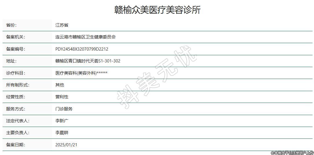 連云港眾美醫(yī)療美容診所成立于2023年,坐落于連云港市贛榆區(qū)青口鎮(zhèn)時代天薈商鋪S1-301-302。我們致力于提供專業(yè)醫(yī)療美容服務,營造溫馨舒適的環(huán)境。診所擁有具備資質(zhì)的專業(yè)團隊,注重安全塑美理念。我們關注求美者需求,提供貼心服務流程,嚴格把控醫(yī)療質(zhì)量,力求為您帶來安心的變美體驗。眾美醫(yī)療美容,期待您的到來。