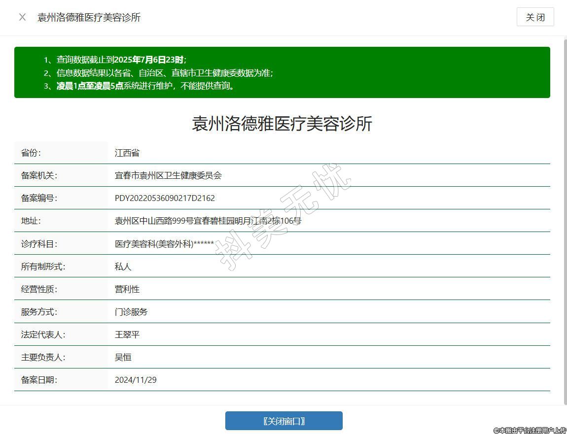 袁州洛德雅醫(yī)療美容診所成立于2024年,位于宜春市袁州區(qū)中山西路999號碧桂園明月江南2棟106號,毗鄰城市核心商圈,交通便捷,引進先進診療設(shè)備,配備標準化無菌手術(shù)室及獨立診療空間,由資深醫(yī)師團隊主理,涵蓋面部塑形、皮膚抗衰及微創(chuàng)輕醫(yī)美項目,嚴格遵循醫(yī)療安全規(guī)范,專注為求美者提供安全、精準的美麗方案。
