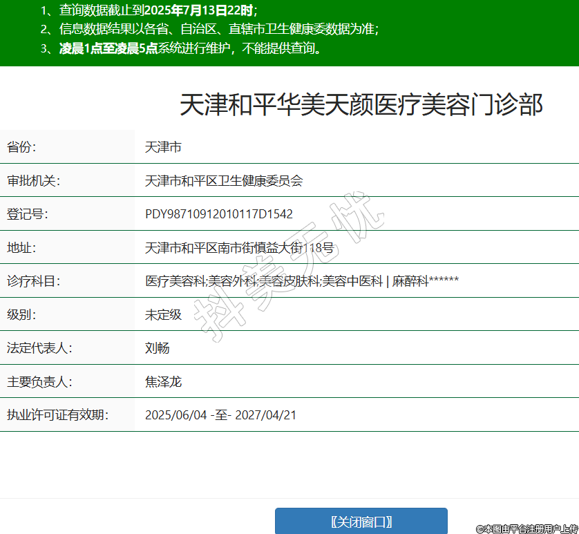 天津和平華美天顏醫(yī)療美容門診部,診療科目:醫(yī)療美容科;美容外科;美容皮膚科;美容中醫(yī)科 | 麻醉科******
