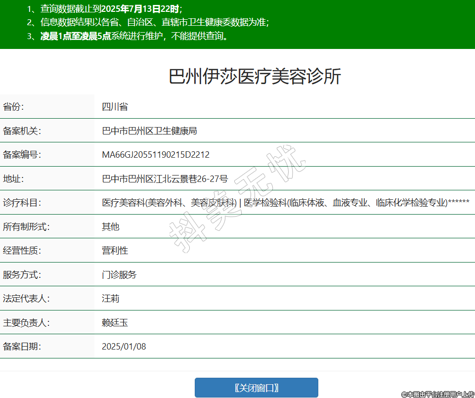 省份:四川省備案機關:巴中市巴州區(qū)衛(wèi)生健康局備案編號:MA66GJ20551190215D2212地址:巴中市巴州區(qū)江北云景巷26-27號診療科目:醫(yī)療美容科(美容外科、美容皮膚科) | 醫(yī)學檢驗科(臨床體液、血液專業(yè)、臨床化學檢驗專業(yè))******所有制形式:其他經(jīng)營性質:營利性服務方式:門診服務法定代表人:汪莉主要負責人:賴廷玉備案日期:2025/01/08 -