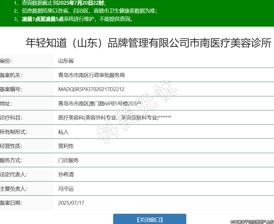 年輕知道(山東)品牌管理有限公司市南醫(yī)療美容診所