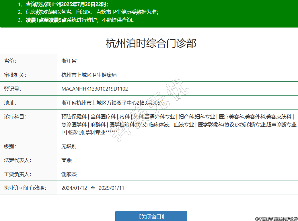 省份:浙江省審批機(jī)關(guān):杭州市上城區(qū)衛(wèi)生健康局登記號:MACANHHK133010219D1102地址:浙江省杭州市上城區(qū)萬銀雙子中心2幢3層305室診療科目:預(yù)防保健科 | 全科醫(yī)療科 | 內(nèi)科 | 外科;普通外科專業(yè) | 婦產(chǎn)科;婦科專業(yè) | 醫(yī)療美容科;美容外科;美容皮膚科 | 急診醫(yī)學(xué)科 | 麻醉科 | 醫(yī)學(xué)檢驗科(協(xié)議);臨床體液、血液專業(yè) | 醫(yī)學(xué)影像科(協(xié)議);X線診斷專業(yè);超聲診斷專業(yè) | 中醫(yī)科;推拿科專業(yè)******級別:無級別法定代表人:高燕主要負(fù)責(zé)人:謝家杰執(zhí)業(yè)許可證有效期:2024/01/12 -至- 2029/01/11 -