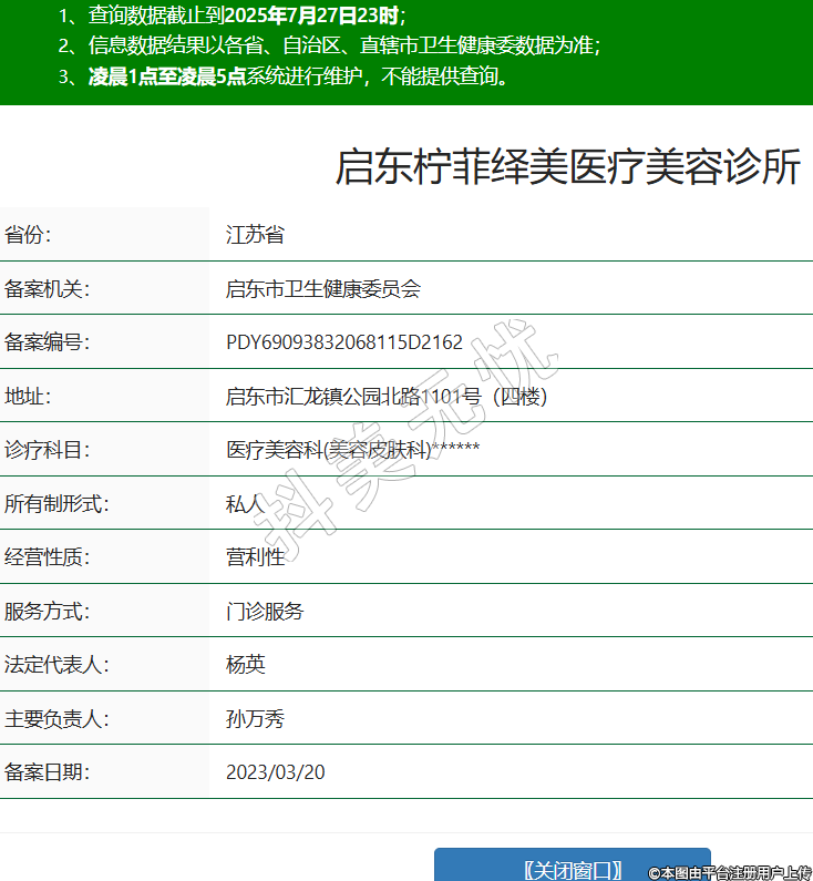 省份:江蘇省備案機關(guān):啟東市衛(wèi)生健康委員會備案編號:PDY69093832068115D2162地址:啟東市匯龍鎮(zhèn)公園北路1101號(四樓)診療科目:醫(yī)療美容科(美容皮膚科)******所有制形式:私人經(jīng)營性質(zhì):營利性服務方式:門診服務法定代表人:楊英主要負責人:孫萬秀備案日期:2023/03/20 -