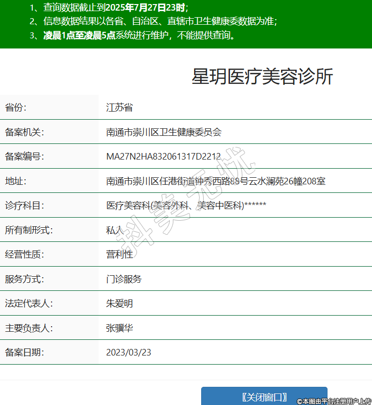 省份:江蘇省備案機關(guān):南通市崇川區(qū)衛(wèi)生健康委員會備案編號:MA27N2HA832061317D2212地址:南通市崇川區(qū)任港街道鐘秀西路88號云水瀾苑26幢208室診療科目:醫(yī)療美容科(美容外科、美容中醫(yī)科)******所有制形式:私人經(jīng)營性質(zhì):營利性服務方式:門診服務法定代表人:朱愛明主要負責人:張驥華備案日期:2023/03/23 -