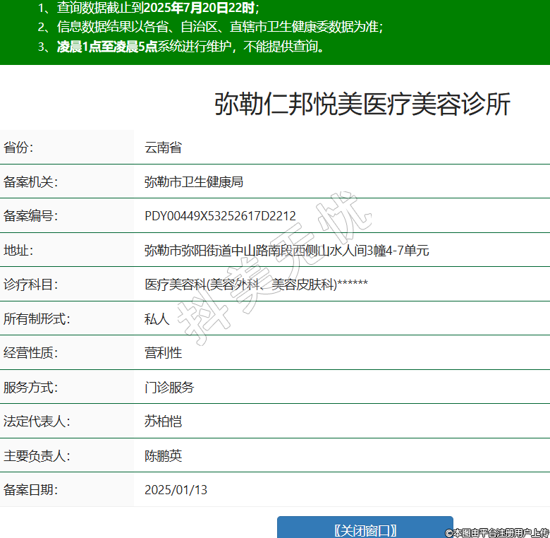 彌勒仁邦悅美醫(yī)療美容診所,診療科目:醫(yī)療美容科(美容外科、美容皮膚科)******