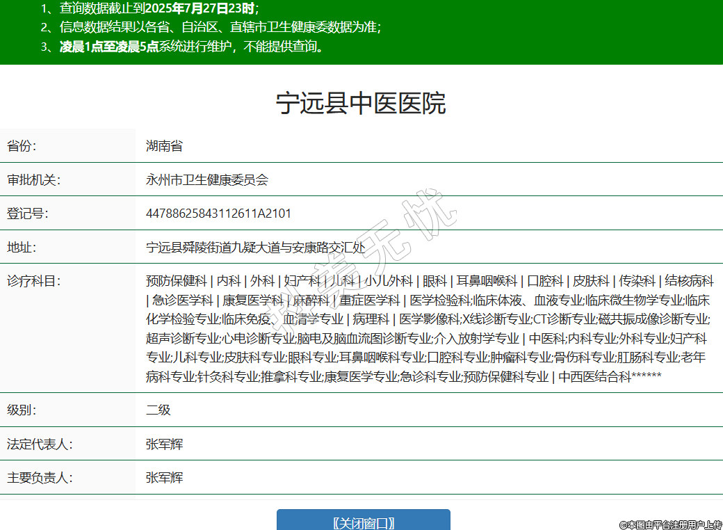 省份:湖南省審批機(jī)關(guān):永州市衛(wèi)生健康委員會登記號:44788625843112611A2101地址:寧遠(yuǎn)縣舜陵街道九疑大道與安康路交匯處診療科目:預(yù)防保健科 | 內(nèi)科 | 外科 | 婦產(chǎn)科 | 兒科 | 小兒外科 | 眼科 | 耳鼻咽喉科 | 口腔科 | 皮膚科 | 傳染科 | 結(jié)核病科 | 急診醫(yī)學(xué)科 | 康復(fù)醫(yī)學(xué)科 | 麻醉科 | 重癥醫(yī)學(xué)科 | 醫(yī)學(xué)檢驗科;臨床體液、血液專業(yè);臨床微生物學(xué)專業(yè);臨床化學(xué)檢驗專業(yè);臨床免疫、血清學(xué)專業(yè) | 病理科 | 醫(yī)學(xué)影像科;X線診斷專業(yè);CT診斷專業(yè);磁共振成像診斷專業(yè);超聲診斷專業(yè);心電診斷專業(yè);腦電及腦血流圖診斷專業(yè);介入放射學(xué)專業(yè) | 中醫(yī)科;內(nèi)科專業(yè);外科專業(yè);婦產(chǎn)科專業(yè);兒科專業(yè);皮膚科專業(yè);眼科專業(yè);耳鼻咽喉科專業(yè);口腔科專業(yè);腫瘤科專業(yè);骨傷科專業(yè);肛腸科專業(yè);老年病科專業(yè);針灸科專業(yè);推拿科專業(yè);康復(fù)醫(yī)學(xué)專業(yè);急診科專業(yè);預(yù)防保健科專業(yè) | 中西醫(yī)結(jié)合科******級別:二級法定代表人:張軍輝主要負(fù)責(zé)人:張軍輝執(zhí)業(yè)許可證有效期:2019/07/15 -至- 2034/07/14 -