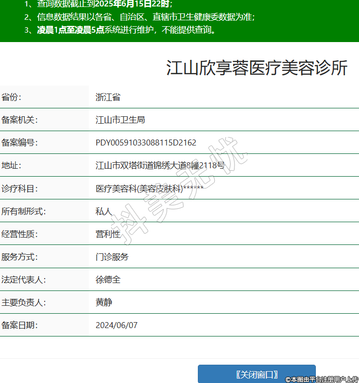 省份:浙江省備案機(jī)關(guān):江山市衛(wèi)生局備案編號(hào):PDY00591033088115D2162地址:江山市雙塔街道錦繡大道8幢2118號(hào)診療科目:醫(yī)療美容科(美容皮膚科)******所有制形式:私人經(jīng)營(yíng)性質(zhì):營(yíng)利性服務(wù)方式:門診服務(wù)法定代表人:徐德全主要負(fù)責(zé)人:黃靜備案日期:2024/06/07 -