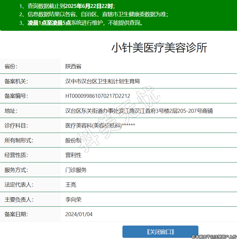 省份:陜西省備案機(jī)關(guān):漢中市漢臺(tái)區(qū)衛(wèi)生和計(jì)劃生育局備案編號(hào):HT000099861070217D2212地址:漢臺(tái)區(qū)東關(guān)街道辦事處濱江路漢江首府3號(hào)樓2層205-207號(hào)商鋪診療科目:醫(yī)療美容科(美容皮膚科)******所有制形式:股份制經(jīng)營(yíng)性質(zhì):營(yíng)利性服務(wù)方式:門診服務(wù)法定代表人:王亮主要負(fù)責(zé)人:李向榮備案日期:2024/01/04 -