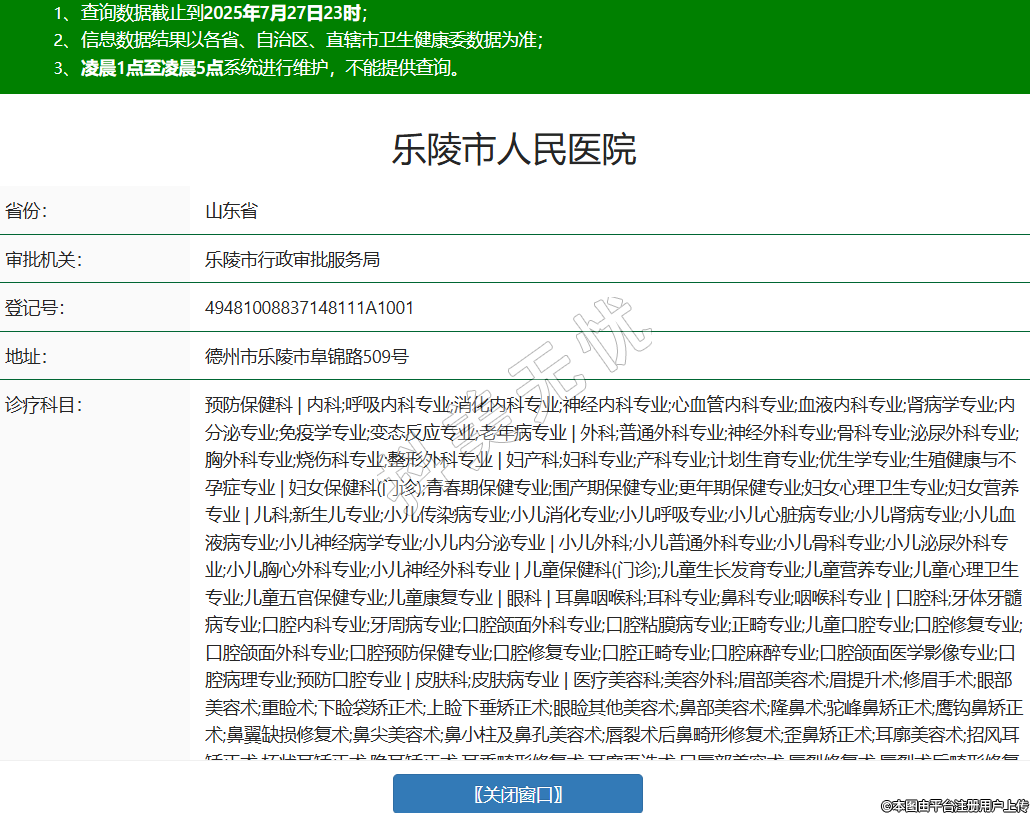 省份:山東省審批機關(guān):樂陵市行政審批服務(wù)局登記號:49481008837148111A1001地址:德州市樂陵市阜錦路509號診療科目:預(yù)防保健科 | 內(nèi)科;呼吸內(nèi)科專業(yè);消化內(nèi)科專業(yè);神經(jīng)內(nèi)科專業(yè);心血管內(nèi)科專業(yè);血液內(nèi)科專業(yè);腎病學(xué)專業(yè);內(nèi)分泌專業(yè);免疫學(xué)專業(yè);變態(tài)反應(yīng)專業(yè);老年病專業(yè) | 外科;普通外科專業(yè);神經(jīng)外科專業(yè);骨科專業(yè);泌尿外科專業(yè);胸外科專業(yè);燒傷科專業(yè);整形外科專業(yè) | 婦產(chǎn)科;婦科專業(yè);產(chǎn)科專業(yè);計劃生育專業(yè);優(yōu)生學(xué)專業(yè);生殖健康與不孕癥專業(yè) | 婦女保健科(門診);青春期保健專業(yè);圍產(chǎn)期保健專業(yè);更年期保健專業(yè);婦女心理衛(wèi)生專業(yè);婦女營養(yǎng)專業(yè) | 兒科;新生兒專業(yè);小兒傳染病專業(yè);小兒消化專業(yè);小兒呼吸專業(yè);小兒心臟病專業(yè);小兒腎病專業(yè);小兒血液病專業(yè);小兒神經(jīng)病學(xué)專業(yè);小兒內(nèi)分泌專業(yè) | 小兒外科;小兒普通外科專業(yè);小兒骨科專業(yè);小兒泌尿外科專業(yè);小兒胸心外科專業(yè);小兒神經(jīng)外科專業(yè) | 兒童保健科(門診);兒童生長發(fā)育專業(yè);兒童營養(yǎng)專業(yè);兒童心理衛(wèi)生專業(yè);兒童五官保健專業(yè);兒童康復(fù)專業(yè) | 眼科 | 耳鼻咽喉科;耳科專業(yè);鼻科專業(yè);咽喉科專業(yè) | 口腔科;牙體牙髓病專業(yè);口腔內(nèi)科專業(yè);牙周病專業(yè);口腔頜面外科專業(yè);口腔粘膜病專業(yè);正畸專業(yè);兒童口腔專業(yè);口腔修復(fù)專業(yè);口腔頜面外科專業(yè);口腔預(yù)防保健專業(yè);口腔修復(fù)專業(yè);口腔正畸專業(yè);口腔麻醉專業(yè);口腔頜面醫(yī)學(xué)影像專業(yè);口腔病理專業(yè);預(yù)防口腔專業(yè) | 皮膚科;皮膚病專業(yè) | 醫(yī)療美容科;美容外科;眉部美容術(shù);眉提升術(shù);修眉手術(shù);眼部美容術(shù);重瞼術(shù);下瞼袋矯正術(shù);上瞼下垂矯正術(shù);眼瞼其他美容術(shù);鼻部美容術(shù);隆鼻術(shù);駝峰鼻矯正術(shù);鷹鉤鼻矯正術(shù);鼻翼缺損修復(fù)術(shù);鼻尖美容術(shù);鼻小柱及鼻孔美容術(shù);唇裂術(shù)后鼻畸形修復(fù)術(shù);歪鼻矯正術(shù);耳廓美容術(shù);招風(fēng)耳矯正術(shù);杯狀耳矯正術(shù);隱耳矯正術(shù);耳垂畸形修復(fù)術(shù);耳廓再造術(shù);口唇部美容術(shù);唇裂修復(fù)術(shù);唇裂術(shù)后畸形修復(fù)術(shù);重唇美容術(shù);唇峰、薄唇增厚美容術(shù);唇珠美容術(shù);口角成形術(shù);酒窩成形術(shù);唇系帶延長成形術(shù);頜面部美容術(shù);顳部填充術(shù);顴部美容術(shù);頦成形術(shù);下頜角肥大矯正術(shù);面部除皺術(shù);額部除皺術(shù);顳部除皺術(shù);面頸部除皺術(shù);中面部除皺術(shù);額顳部除皺術(shù);額顳面部除皺術(shù);顳面頸部除皺術(shù);全面頸部除皺術(shù);內(nèi)窺鏡除皺術(shù);面部懸吊除皺術(shù);乳房美容術(shù);隆乳術(shù);乳房肥大縮小術(shù);乳頭內(nèi)陷矯正術(shù);乳頭肥大縮小術(shù);乳房下垂矯正術(shù);乳頭乳暈重建術(shù);脂肪抽吸及腹壁成形術(shù);負(fù)壓脂肪抽吸術(shù);超聲脂肪抽吸術(shù);電子吸脂術(shù);注射器法吸脂術(shù);腹壁成形術(shù);會陰部美容術(shù);處女膜修復(fù)術(shù);陰道松弛縮緊術(shù);陰蒂肥大縮小術(shù);小陰唇肥大縮小術(shù);包皮環(huán)切術(shù);陰莖延長術(shù);美容皮膚科;美容皮膚術(shù)(外科);診斷技術(shù);真菌鏡檢技術(shù);斑貼試驗技術(shù);皮膚活檢術(shù);治療技術(shù);糖皮質(zhì)激素皮損內(nèi)注射;藥物加壓治療;外用藥物治療;光化學(xué)療法;美容皮膚術(shù)(內(nèi)科);皮膚磨削術(shù);酒渣鼻切割術(shù);皮膚腫物切除術(shù);拔甲術(shù);刮除術(shù);自體表皮移植術(shù);腋臭手術(shù);足病修治術(shù);毛發(fā)移植術(shù);美容醫(yī)療應(yīng)用技術(shù);物理美容治療術(shù);激光美容治療術(shù);高頻電美容治療;冷凍美容治療;其他物理美容治療;脫毛術(shù);穿耳孔術(shù);注射美容技術(shù);A型肉毒毒素美容注射技術(shù);皮膚(軟組織)注射(填充)美容;美容文飾技術(shù);文眉技術(shù);文眼線技術(shù);文唇技術(shù);不良文飾修復(fù)技術(shù) | 精神科(門診) | 傳染科;腸道傳染病專業(yè);呼吸道傳染病專業(yè);肝炎專業(yè);蟲媒傳染病專業(yè);動物源性傳染病專業(yè);蠕蟲病專業(yè) | 結(jié)核病科 | 腫瘤科 | 急診醫(yī)學(xué)科 | 康復(fù)醫(yī)學(xué)科 | 臨終關(guān)懷科 | 麻醉科 | 疼痛科 | 重癥醫(yī)學(xué)科 | 醫(yī)學(xué)檢驗科;臨床體液、血液專業(yè);臨床微生物學(xué)專業(yè);臨床化學(xué)檢驗專業(yè);臨床免疫、血清學(xué)專業(yè);臨床細(xì)胞分子遺傳學(xué)專業(yè) | 病理科 | 醫(yī)學(xué)影像科;X線診斷專業(yè);CT診斷專業(yè);磁共振成像診斷專業(yè);超聲診斷專業(yè);心電診斷專業(yè);腦電及腦血流圖診斷專業(yè);神經(jīng)肌肉電圖專業(yè);介入放射學(xué)專業(yè) | 中醫(yī)科;內(nèi)科專業(yè);外科專業(yè);婦產(chǎn)科專業(yè);兒科專業(yè);皮膚科專業(yè);腫瘤科專業(yè);老年病科專業(yè);針灸科專業(yè);推拿科專業