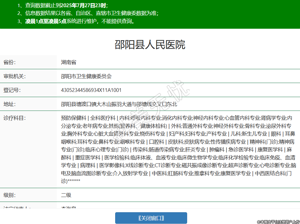 省份:湖南省審批機關(guān):邵陽市衛(wèi)生健康委員會登記號:43052344586934X11A1001地址:邵陽縣塘渡口鎮(zhèn)大木山振羽大道與邵塘線交叉口東北診療科目:預防保健科 | 全科醫(yī)療科 | 內(nèi)科;呼吸內(nèi)科專業(yè);消化內(nèi)科專業(yè);神經(jīng)內(nèi)科專業(yè);心血管內(nèi)科專業(yè);腎病學專業(yè);內(nèi)分泌專業(yè);老年病專業(yè);其他(營養(yǎng)科、健康體檢科) | 外科;普通外科專業(yè);神經(jīng)外科專業(yè);骨科專業(yè);泌尿外科專業(yè);胸外科專業(yè);心臟大血管外科專業(yè);燒傷科專業(yè) | 婦產(chǎn)科;婦科專業(yè);產(chǎn)科專業(yè) | 兒科;新生兒專業(yè) | 眼科 | 耳鼻咽喉科;耳科專業(yè);鼻科專業(yè);咽喉科專業(yè) | 口腔科 | 皮膚科;皮膚病專業(yè);性傳播疾病專業(yè) | 精神科(門診);精神病專業(yè)(門診);臨床心理專業(yè)(門診) | 傳染科;腸道傳染病專業(yè);肝炎專業(yè) | 腫瘤科 | 急診醫(yī)學科 | 康復醫(yī)學科 | 麻醉科 | 重癥醫(yī)學科 | 醫(yī)學檢驗科;臨床體液、血液專業(yè);臨床微生物學專業(yè);臨床化學檢驗專業(yè);臨床免疫、血清學專業(yè) | 病理科 | 醫(yī)學影像科;X線診斷專業(yè);CT診斷專業(yè);磁共振成像診斷專業(yè);超聲診斷專業(yè);心電診斷專業(yè);腦電及腦血流圖診斷專業(yè);介入放射學專業(yè) | 中醫(yī)科;肛腸科專業(yè);推拿科專業(yè);康復醫(yī)學專業(yè) | 中西醫(yī)結(jié)合科(門診)******級別:二級法定代表人:李海泉主要負責人:李海泉執(zhí)業(yè)許可證有效期:2025/04/03 -至- 2028/04/11 -