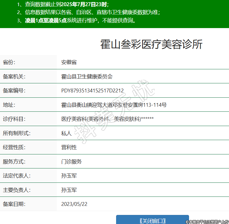 省份:安徽省備案機關:霍山縣衛(wèi)生健康委員會備案編號:PDY87935134152517D2212地址:霍山縣衡山鎮(zhèn)迎駕大道鄧家巷安置房113-114號診療科目:醫(yī)療美容科(美容外科、美容皮膚科)******所有制形式:私人經營性質:營利性服務方式:門診服務法定代表人:孫玉軍主要負責人:孫玉軍備案日期:2023/05/22 -