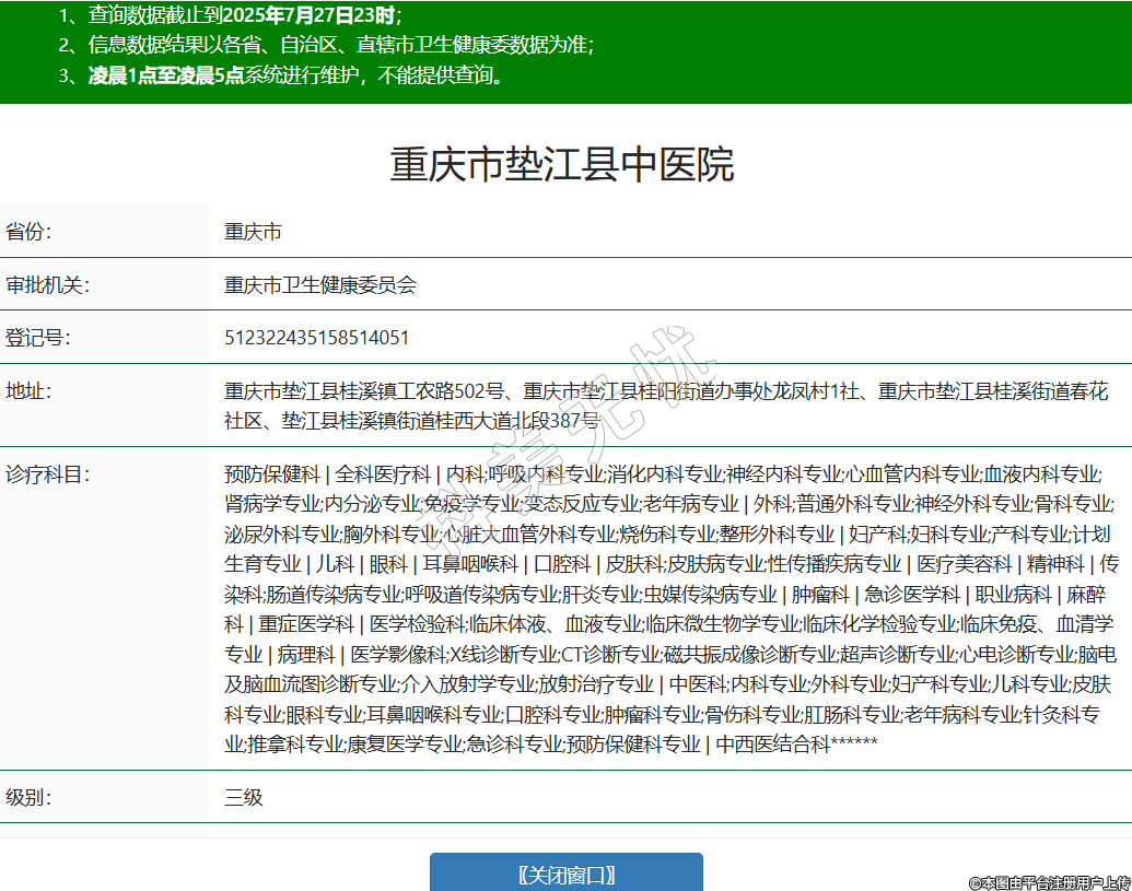 省份:重慶市審批機(jī)關(guān):重慶市衛(wèi)生健康委員會(huì)登記號(hào):512322435158514051地址:重慶市墊江縣桂溪鎮(zhèn)工農(nóng)路502號(hào)、重慶市墊江縣桂陽(yáng)街道辦事處龍鳳村1社、重慶市墊江縣桂溪街道春花社區(qū)、墊江縣桂溪鎮(zhèn)街道桂西大道北段387號(hào)診療科目:預(yù)防保健科 | 全科醫(yī)療科 | 內(nèi)科;呼吸內(nèi)科專業(yè);消化內(nèi)科專業(yè);神經(jīng)內(nèi)科專業(yè);心血管內(nèi)科專業(yè);血液內(nèi)科專業(yè);腎病學(xué)專業(yè);內(nèi)分泌專業(yè);免疫學(xué)專業(yè);變態(tài)反應(yīng)專業(yè);老年病專業(yè) | 外科;普通外科專業(yè);神經(jīng)外科專業(yè);骨科專業(yè);泌尿外科專業(yè);胸外科專業(yè);心臟大血管外科專業(yè);燒傷科專業(yè);整形外科專業(yè) | 婦產(chǎn)科;婦科專業(yè);產(chǎn)科專業(yè);計(jì)劃生育專業(yè) | 兒科 | 眼科 | 耳鼻咽喉科 | 口腔科 | 皮膚科;皮膚病專業(yè);性傳播疾病專業(yè) | 醫(yī)療美容科 | 精神科 | 傳染科;腸道傳染病專業(yè);呼吸道傳染病專業(yè);肝炎專業(yè);蟲媒傳染病專業(yè) | 腫瘤科 | 急診醫(yī)學(xué)科 | 職業(yè)病科 | 麻醉科 | 重癥醫(yī)學(xué)科 | 醫(yī)學(xué)檢驗(yàn)科;臨床體液、血液專業(yè);臨床微生物學(xué)專業(yè);臨床化學(xué)檢驗(yàn)專業(yè);臨床免疫、血清學(xué)專業(yè) | 病理科 | 醫(yī)學(xué)影像科;X線診斷專業(yè);CT診斷專業(yè);磁共振成像診斷專業(yè);超聲診斷專業(yè);心電診斷專業(yè);腦電及腦血流圖診斷專業(yè);介入放射學(xué)專業(yè);放射治療專業(yè) | 中醫(yī)科;內(nèi)科專業(yè);外科專業(yè);婦產(chǎn)科專業(yè);兒科專業(yè);皮膚科專業(yè);眼科專業(yè);耳鼻咽喉科專業(yè);口腔科專業(yè);腫瘤科專業(yè);骨傷科專業(yè);肛腸科專業(yè);老年病科專業(yè);針灸科專業(yè);推拿科專業(yè);康復(fù)醫(yī)學(xué)專業(yè);急診科專業(yè);預(yù)防保健科專業(yè) | 中西醫(yī)結(jié)合科******級(jí)別:三級(jí)法定代表人:萬(wàn)成緒主要負(fù)責(zé)人:萬(wàn)成緒執(zhí)業(yè)許可證有效期:2020/06/11 -至- 2035/06/10 -