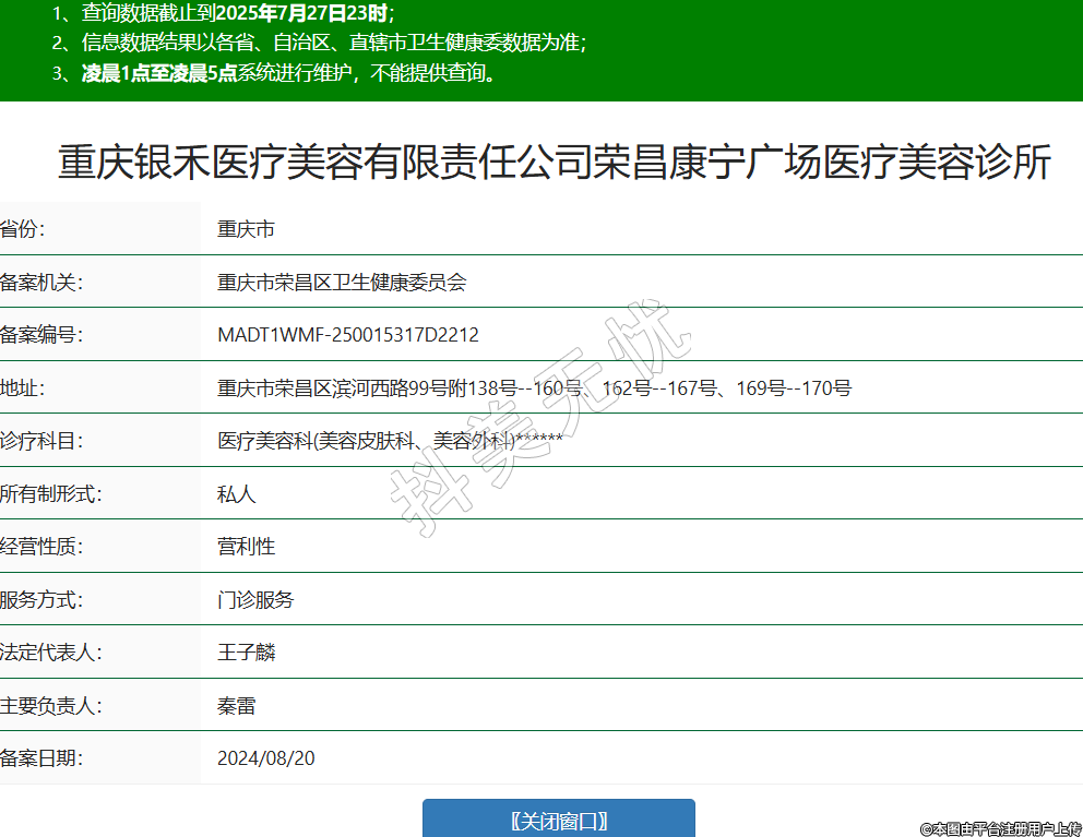 重慶銀禾醫(yī)療美容有限責(zé)任公司榮昌康寧廣場醫(yī)療美容診所