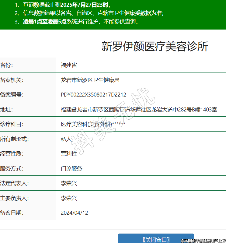 省份:福建省備案機關(guān):龍巖市新羅區(qū)衛(wèi)生健康局備案編號:PDY00222X35080217D2212地址:福建省龍巖市新羅區(qū)西陂街道華蓮社區(qū)龍巖大道中282號B幢1403室診療科目:醫(yī)療美容科(美容外科)******所有制形式:私人經(jīng)營性質(zhì):營利性服務(wù)方式:門診服務(wù)法定代表人:李榮興主要負(fù)責(zé)人:李榮興備案日期:2024/04/12 -