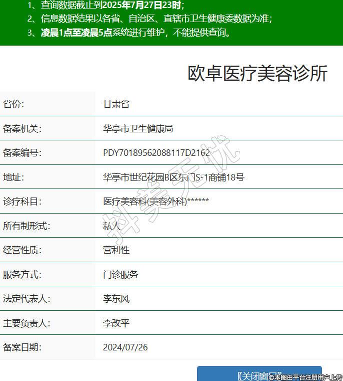 省份:甘肅省備案機(jī)關(guān):華亭市衛(wèi)生健康局備案編號(hào):PDY70189562088117D2162地址:華亭市世紀(jì)花園B區(qū)東門S-1商鋪18號(hào)診療科目:醫(yī)療美容科(美容外科)******所有制形式:私人經(jīng)營(yíng)性質(zhì):營(yíng)利性服務(wù)方式:門診服務(wù)法定代表人:李東風(fēng)主要負(fù)責(zé)人:李改平備案日期:2024/07/26 -