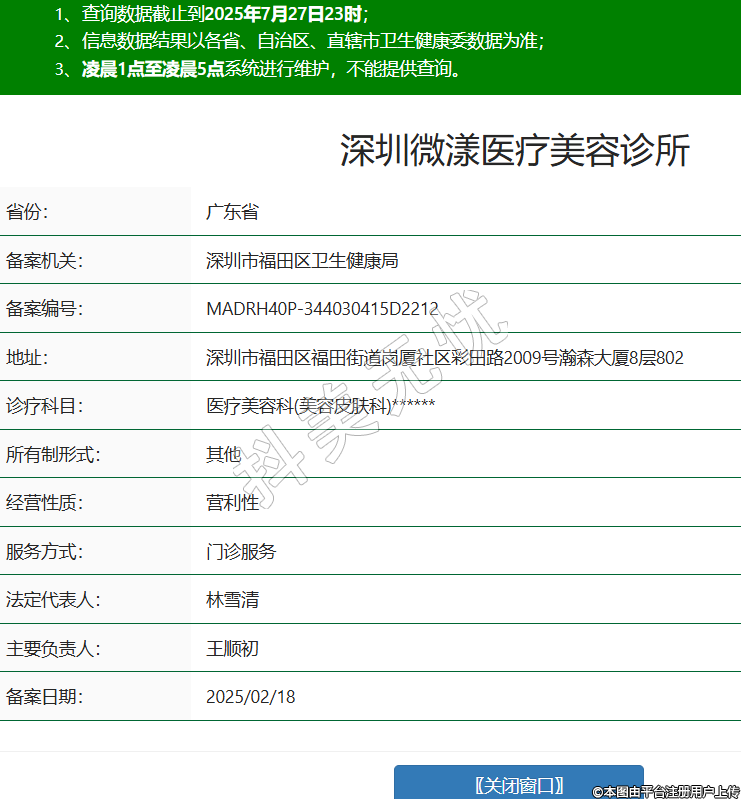 省份:廣東省備案機(jī)關(guān):深圳市福田區(qū)衛(wèi)生健康局備案編號:MADRH40P-344030415D2212地址:深圳市福田區(qū)福田街道崗廈社區(qū)彩田路2009號瀚森大廈8層802診療科目:醫(yī)療美容科(美容皮膚科)******所有制形式:其他經(jīng)營性質(zhì):營利性服務(wù)方式:門診服務(wù)法定代表人:林雪清主要負(fù)責(zé)人:王順初備案日期:2025/02/18 -