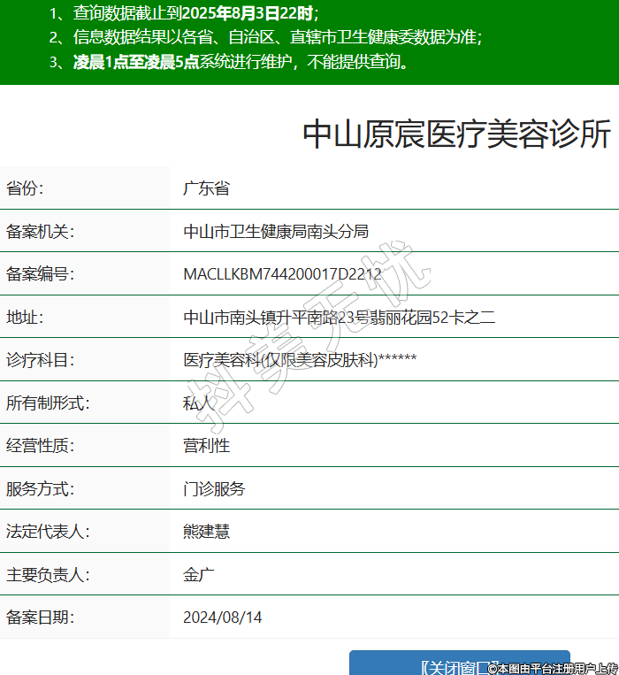 省份:廣東省備案機關:中山市衛(wèi)生健康局南頭分局備案編號:MACLLKBM744200017D2212地址:中山市南頭鎮(zhèn)升平南路23號翡麗花園52卡之二診療科目:醫(yī)療美容科(僅限美容皮膚科)******所有制形式:私人經(jīng)營性質(zhì):營利性服務方式:門診服務法定代表人:熊建慧主要負責人:金廣備案日期:2024/08/14 -
