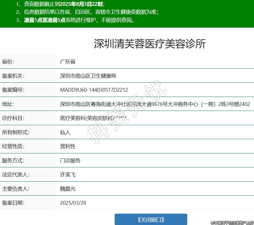 省份:廣東省備案機(jī)關(guān):深圳市南山區(qū)衛(wèi)生健康局備案編號(hào):MADD9U60-144030517D2212地址:深圳市南山區(qū)粵海街道大沖社區(qū)深南大道9676號(hào)大沖商務(wù)中心(一期)2棟3號(hào)樓2402診療科目:醫(yī)療美容科(美容皮膚科)******所有制形式:私人經(jīng)營(yíng)性質(zhì):營(yíng)利性服務(wù)方式:門診服務(wù)法定代表人:許龍飛主要負(fù)責(zé)人:魏晨光備案日期:2025/03/28 -
