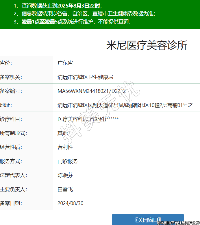 省份:廣東省備案機關:清遠市清城區(qū)衛(wèi)生健康局備案編號:MA56WXNM244180217D2212地址:清遠市清城區(qū)鳳翔大道68號鳳城酈都北區(qū)10幢2層商鋪01號之一診療科目:醫(yī)療美容科(美容外科)******所有制形式:其他經營性質:營利性服務方式:門診服務法定代表人:陳燕芬主要負責人:白雪飛備案日期:2024/08/30 -