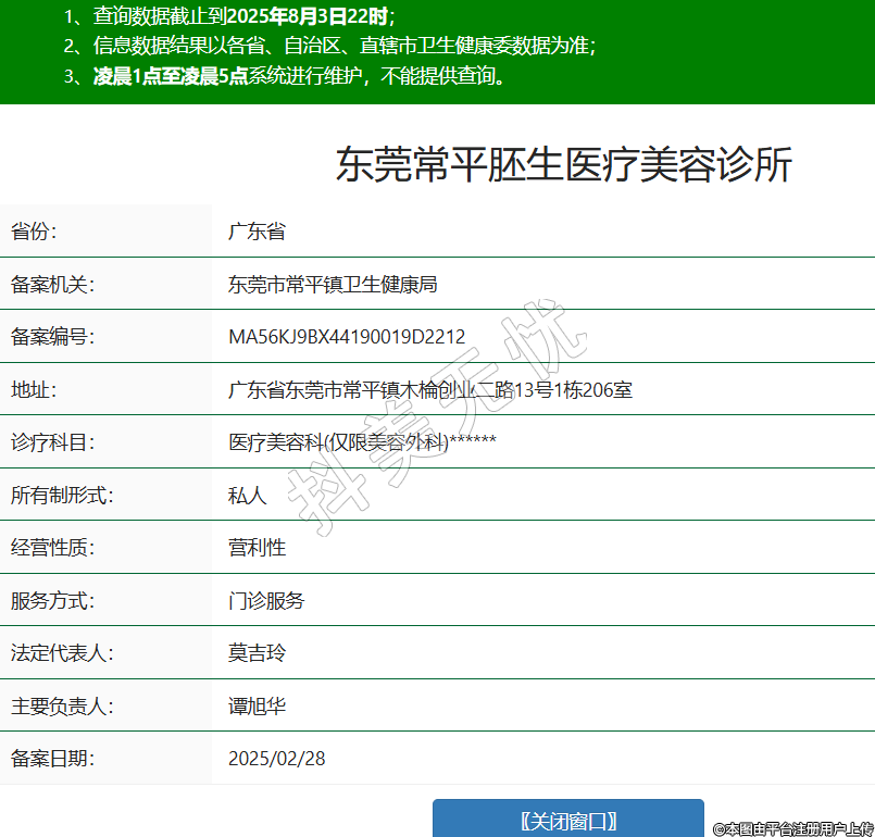 省份:廣東省備案機(jī)關(guān):東莞市常平鎮(zhèn)衛(wèi)生健康局備案編號(hào):MA56KJ9BX44190019D2212地址:廣東省東莞市常平鎮(zhèn)木棆創(chuàng)業(yè)二路13號(hào)1棟206室診療科目:醫(yī)療美容科(僅限美容外科)******所有制形式:私人經(jīng)營性質(zhì):營利性服務(wù)方式:門診服務(wù)法定代表人:莫吉玲主要負(fù)責(zé)人:譚旭華備案日期:2025/02/28 -