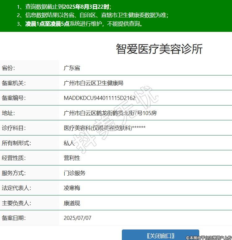 省份:廣東省備案機(jī)關(guān):廣州市白云區(qū)衛(wèi)生健康局備案編號:MADDKDCU944011115D2162地址:廣州市白云區(qū)鶴龍街鶴賢北街7號105房診療科目:醫(yī)療美容科(僅限美容皮膚科)******所有制形式:私人經(jīng)營性質(zhì):營利性服務(wù)方式:門診服務(wù)法定代表人:凌寒梅主要負(fù)責(zé)人:康道現(xiàn)備案日期:2025/07/07 -