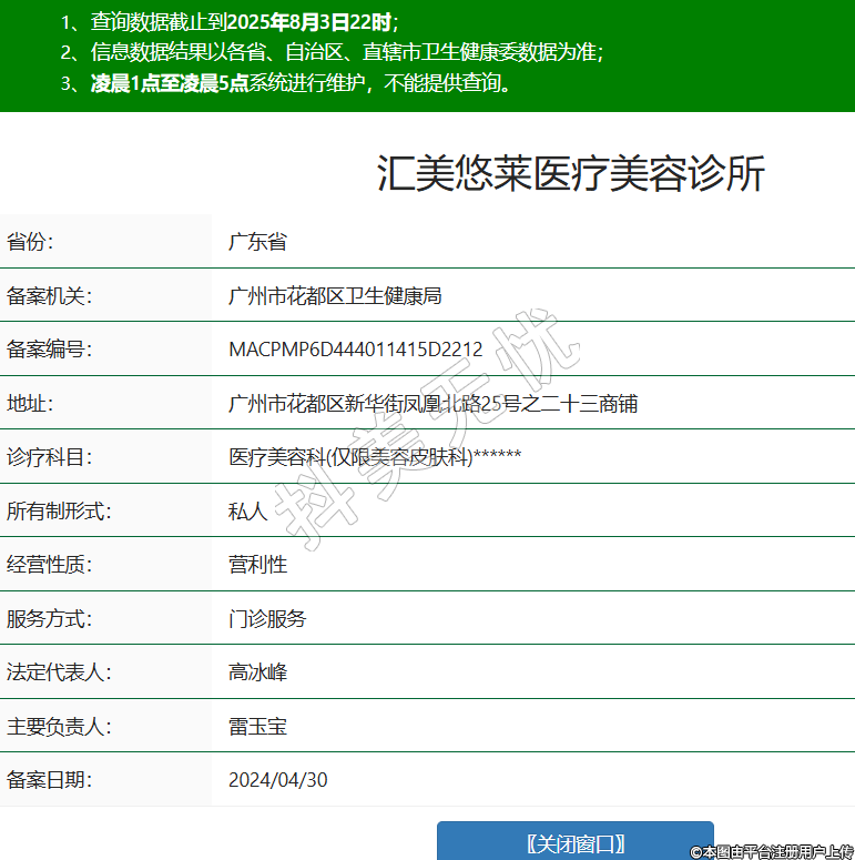 省份:廣東省備案機關:廣州市花都區(qū)衛(wèi)生健康局備案編號:MACPMP6D444011415D2212地址:廣州市花都區(qū)新華街鳳凰北路25號之二十三商鋪診療科目:醫(yī)療美容科(僅限美容皮膚科)******所有制形式:私人經(jīng)營性質:營利性服務方式:門診服務法定代表人:高冰峰主要負責人:雷玉寶備案日期:2024/04/30 -