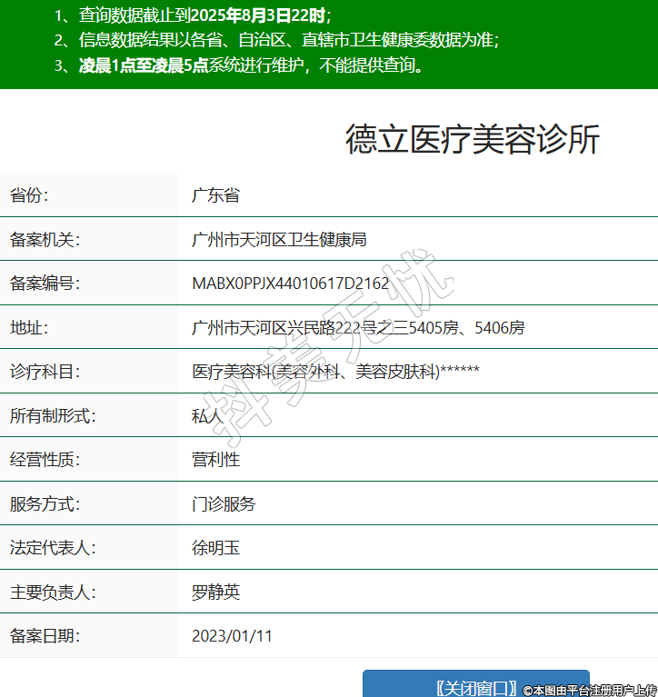 省份:廣東省備案機關(guān):廣州市天河區(qū)衛(wèi)生健康局備案編號:MABX0PPJX44010617D2162地址:廣州市天河區(qū)興民路222號之三5405房、5406房診療科目:醫(yī)療美容科(美容外科、美容皮膚科)******所有制形式:私人經(jīng)營性質(zhì):營利性服務(wù)方式:門診服務(wù)法定代表人:徐明玉主要負責(zé)人:羅靜英備案日期:2023/01/11 -