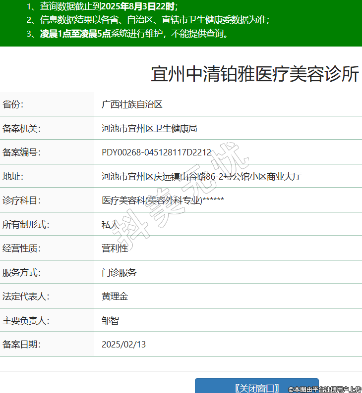 省份:廣西壯族自治區(qū)備案機(jī)關(guān):河池市宜州區(qū)衛(wèi)生健康局備案編號(hào):PDY00268-045128117D2212地址:河池市宜州區(qū)慶遠(yuǎn)鎮(zhèn)山谷路86-2號(hào)公館小區(qū)商業(yè)大廳診療科目:醫(yī)療美容科(美容外科專業(yè))******所有制形式:私人經(jīng)營性質(zhì):營利性服務(wù)方式:門診服務(wù)法定代表人:黃理金主要負(fù)責(zé)人:鄒智備案日期:2025/02/13 -