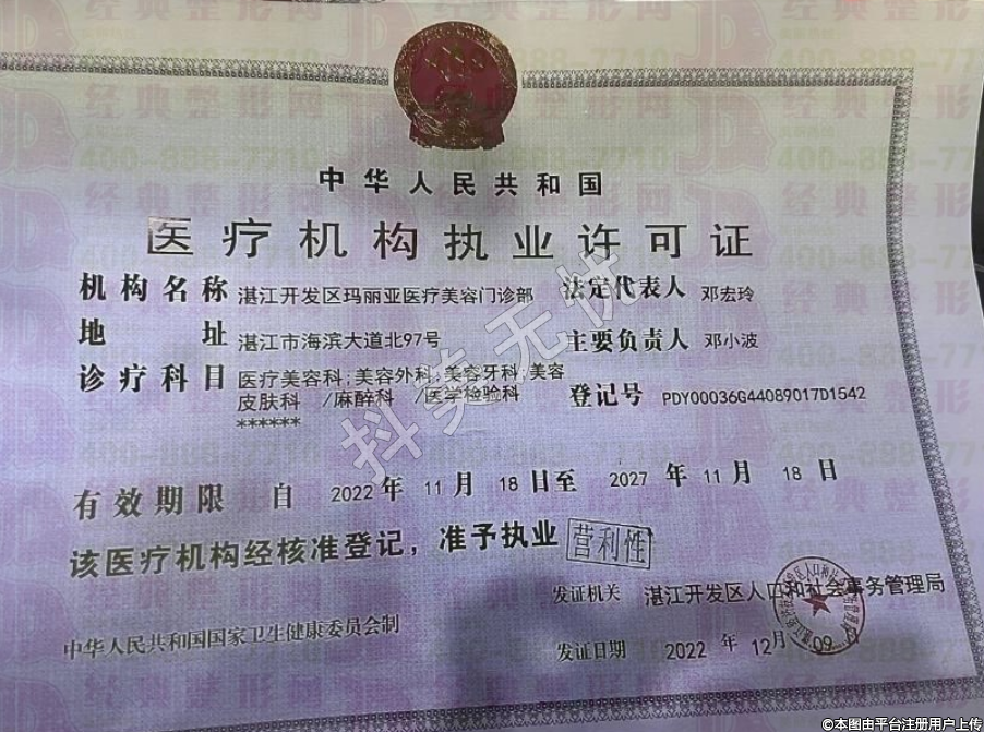 機構(gòu)名稱:湛江開發(fā)區(qū)瑪麗亞醫(yī)療美容門診部